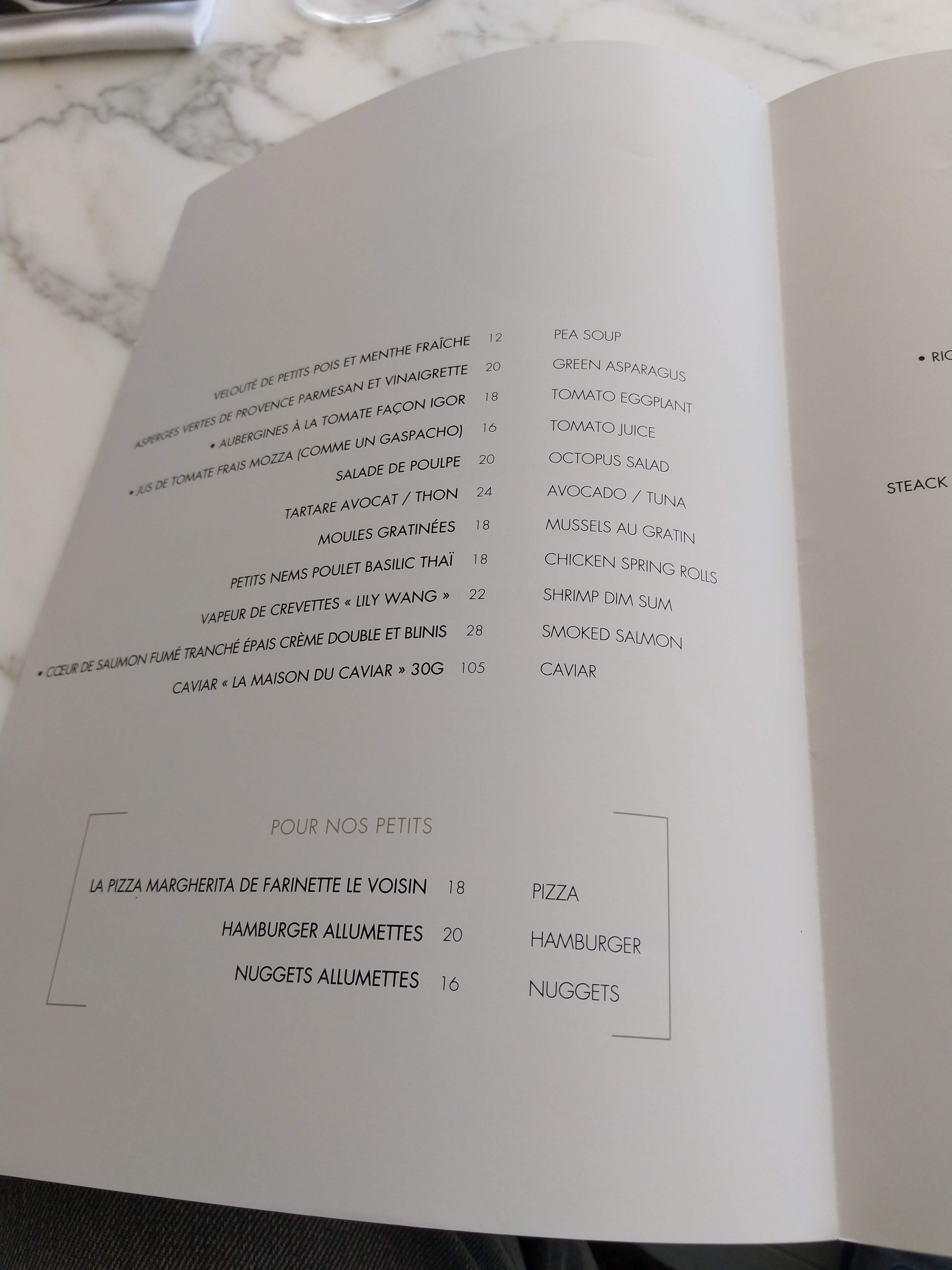 J'ai bien cherché sur leur site les menus, la carte, les tarifs du restaurant et RIEN il faut y aller à l'aveugle ..... Je signale quand même que par exemple le vrai PALACE parisien LE CRILLON vous pouvez voir tous les tarifs des menus et de la carte sur leur site. J'ai fait cette recherche car une amie m'a parlé de son repas à 80 € sans le vin ... (bonne viande et bon saumon) assez basique et impossible d'avoir une carafe d'eau. On lui a servi de l'eau verre par verre !!! Tout cela ne me donne pas envie de me déplacer, même si le cadre est très beau.