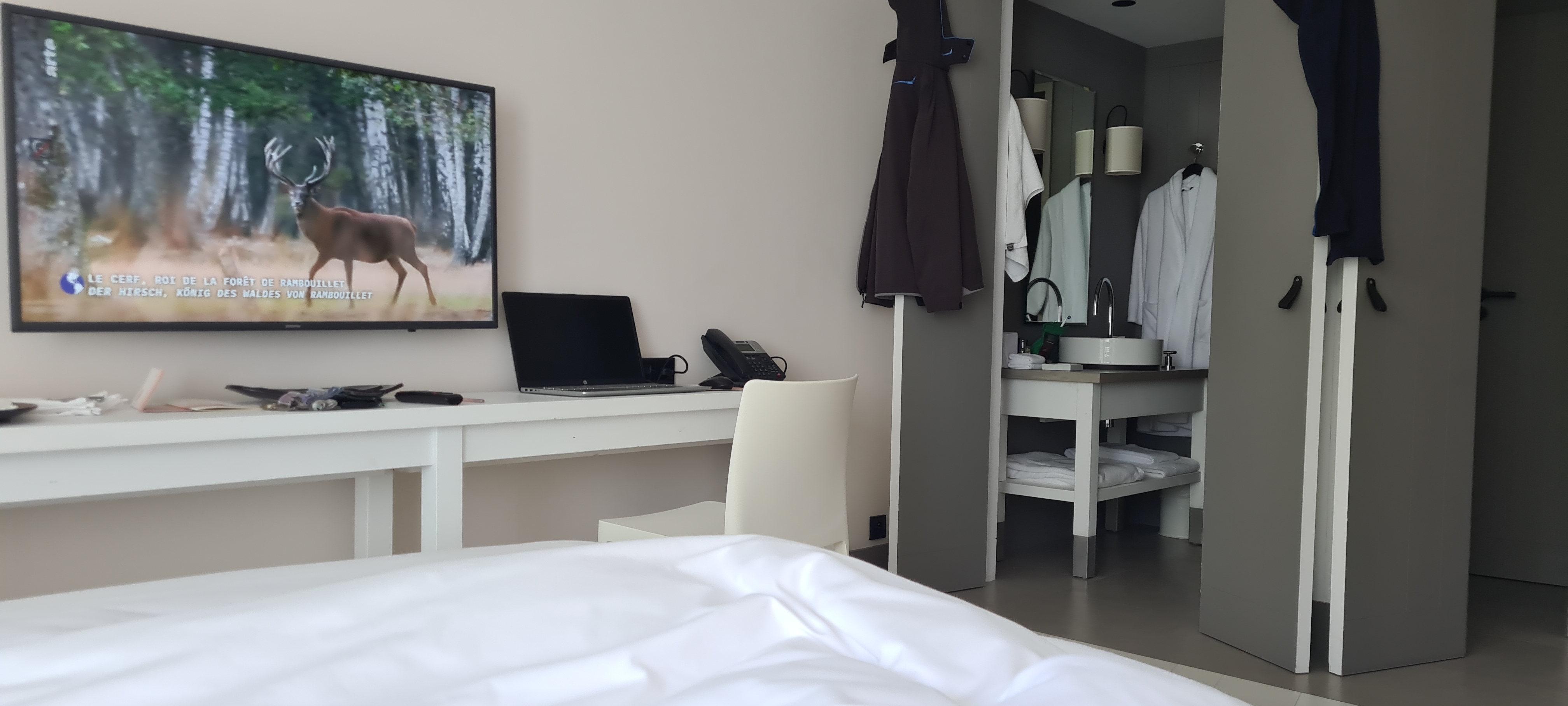 Sans conteste le meilleur hôtel de la région, un personnel excellent, un excellent service de parking. C'est un peu cher, mais c'est juste compte tenu du service. Il y a deux points qui pourraient être améliorés : il n'y a pas de variation dans le petit-déjeuner, donc au bout d'une semaine, ça devient ennuyeux ; le restaurant du dîner est trop cher (mais vraiment, il n'y a pas de bonnes options près de l'hôtel !) et pour cela, je m'attendrais également à plus de choix. A titre de comparaison : nous sommes allés dans un restaurant étoilé Michelin à une heure de route et la nourriture était bien meilleure – et moins chère. Mais bon, je ne pouvais pas trop apprécier le vin car nous avons dû faire des allers-retours ;).