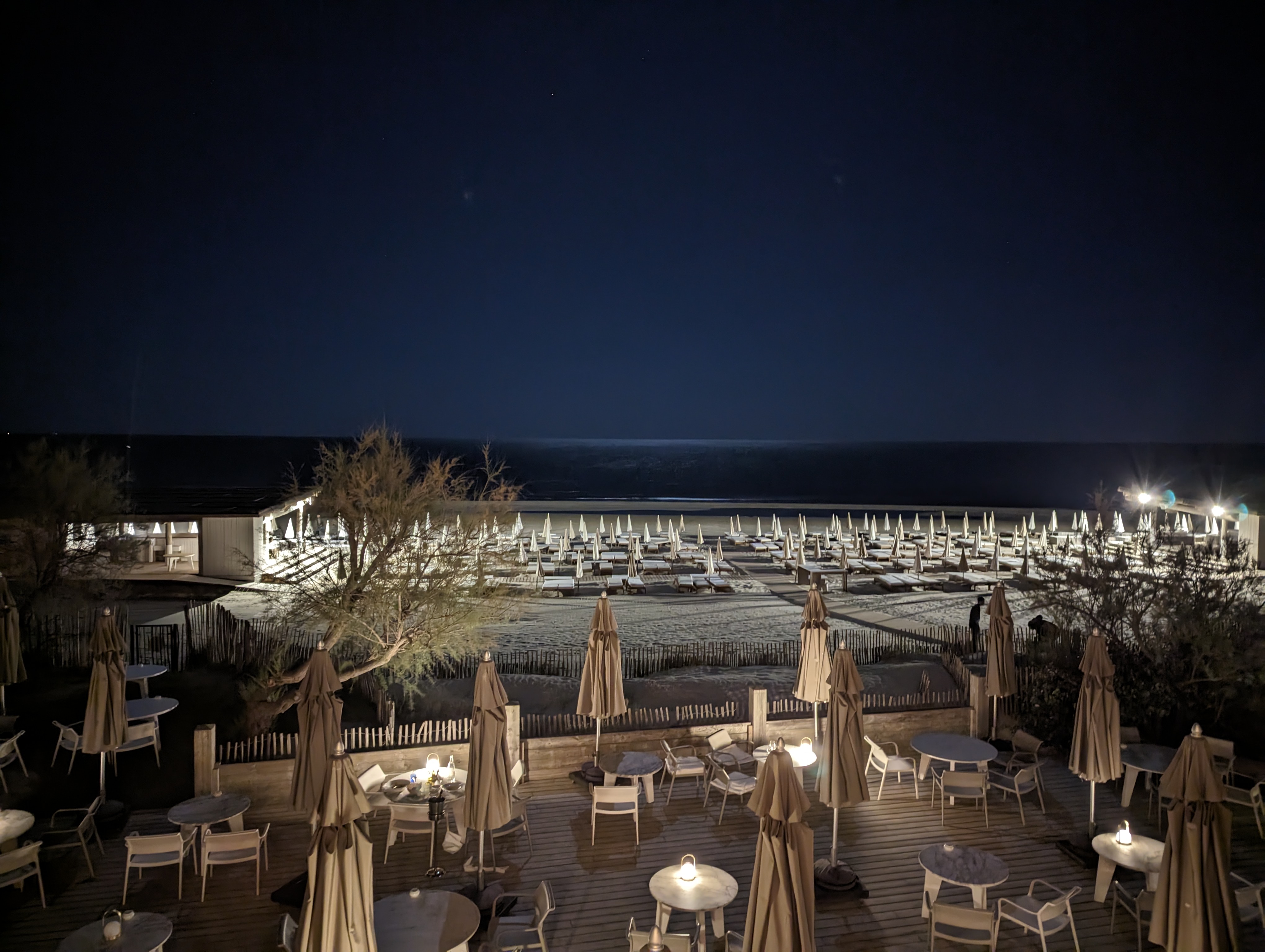 Très belle soirée passée à la plage, dans les canapés confortables et dans une ambiance très sympa. Hall d'entrée superbe, personnel accueillant. En revanche, GROSSE GROSSE déception sur la cuisine servie à la plage. C'est TRÈS (TROP) cher pour la qualité et la quantité dans l'assiette, on s'est même demandé si ce n'était pas une caméra cachée :-) A ce point-là, ce serait parfait si on pouvait apporter son propre pique-nique :-)