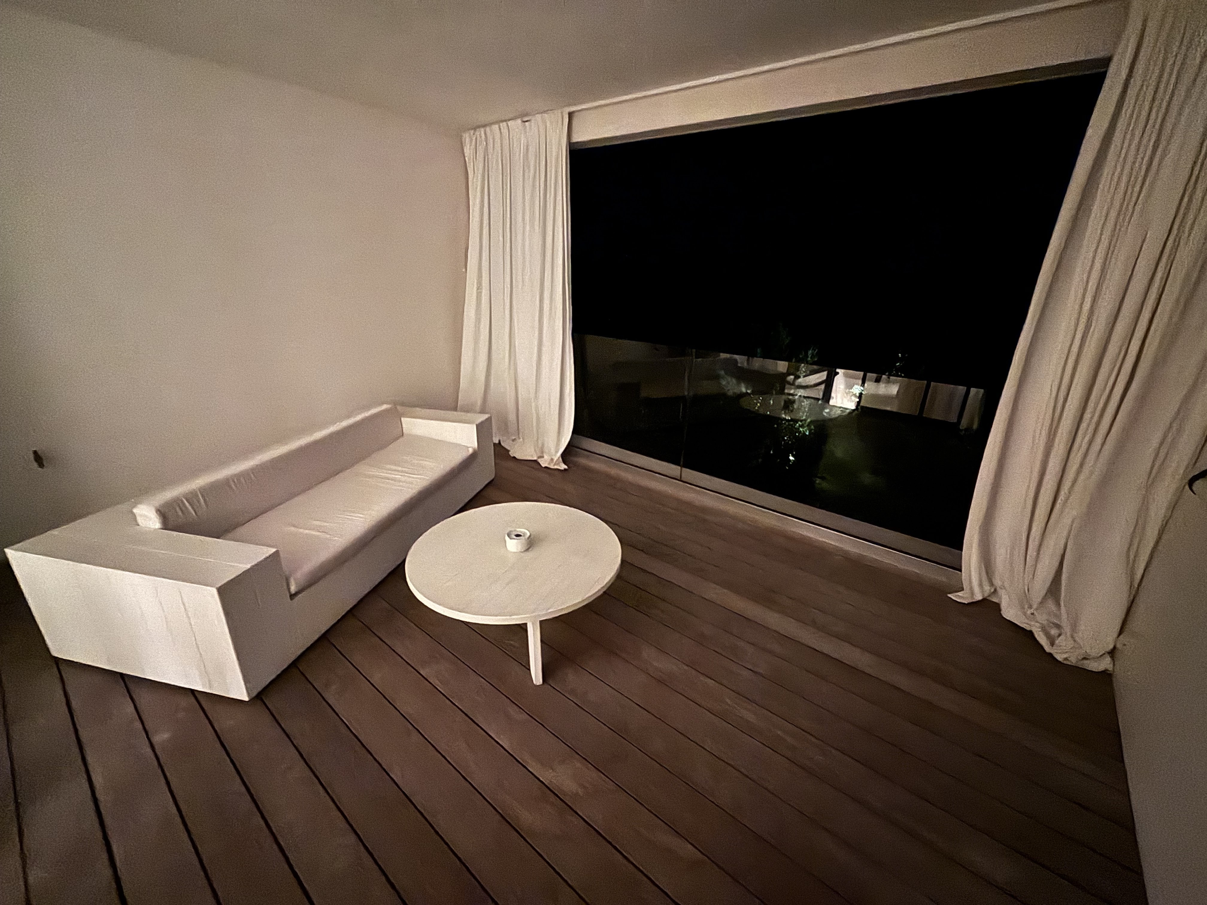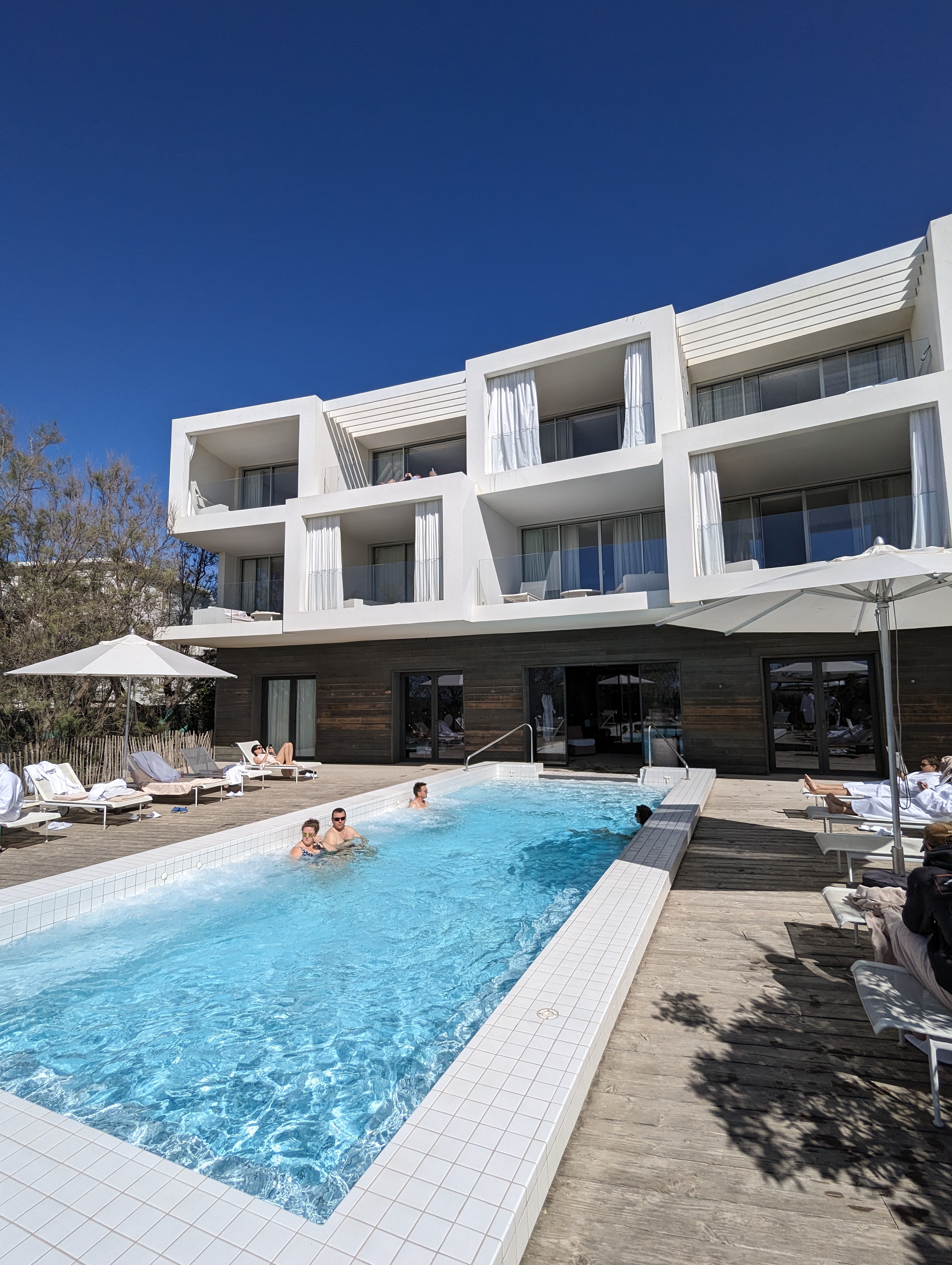Belle architecture, directement la page, très moderne, avec une touche de neo-retro très appreciable; et tout est pensé (l'agencement et les meubles des chambres, le spa, les deux piscines, les terrasses...). Personnel d'une grande gentillesse et restaurant très qualitatif, de type Costes. Mais la magie finit d'opérer avec le coucher et le lever du jour, observé depuis son lit, face à la mer. C'est extraordinaire, c'est le vrai luxe ! Mieux que n'importe quel palace parisien.