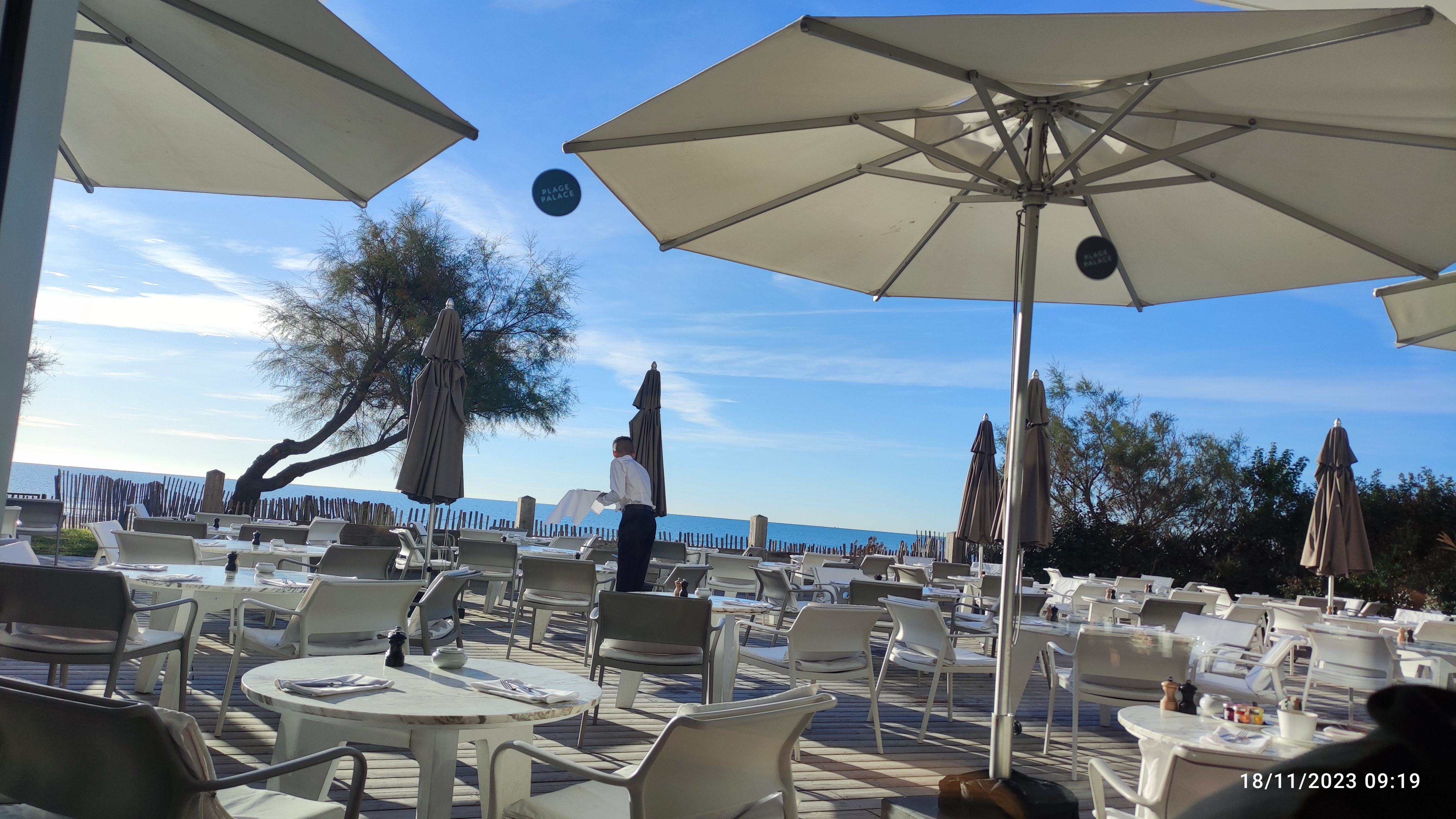 Nous allons depuis fin Mai au Lounge que l'hôtel a mis en place sur la plage intitulé ; Plage palace. Les serveurs sont adorables et les produits de qualités, nous consommons a chaque fois sans aucun problème, on adore! Malheureusement, nous y sommes allez hier avec ma maman, venu de Bruxelles, pour lui montrer notre spot favoris de Carnon. Après s'être installés comme d'habitude et être partis nous baigner, les serveurs nous informent la nouveauté ; La partie lounge, qui est sur la plage, est interdite à la baignade et il faut se couvrir ... Le responsable venait de changer la règlementation, ils n'étaient pas au courant quand ils nous on installé. Et franchement cette règle est risible pour un bar de plage quand il fait plus de 34°... Nous avons vu des clients de l'hôtel devoir mettre leur peignoir sur la page alors que la chambre est à 1000€/nuit, ridicule! J'ai travaillé des années dans l'hôtellerie de luxe et c'est du jamais vu. On a comprit, on ne reviendra pas.