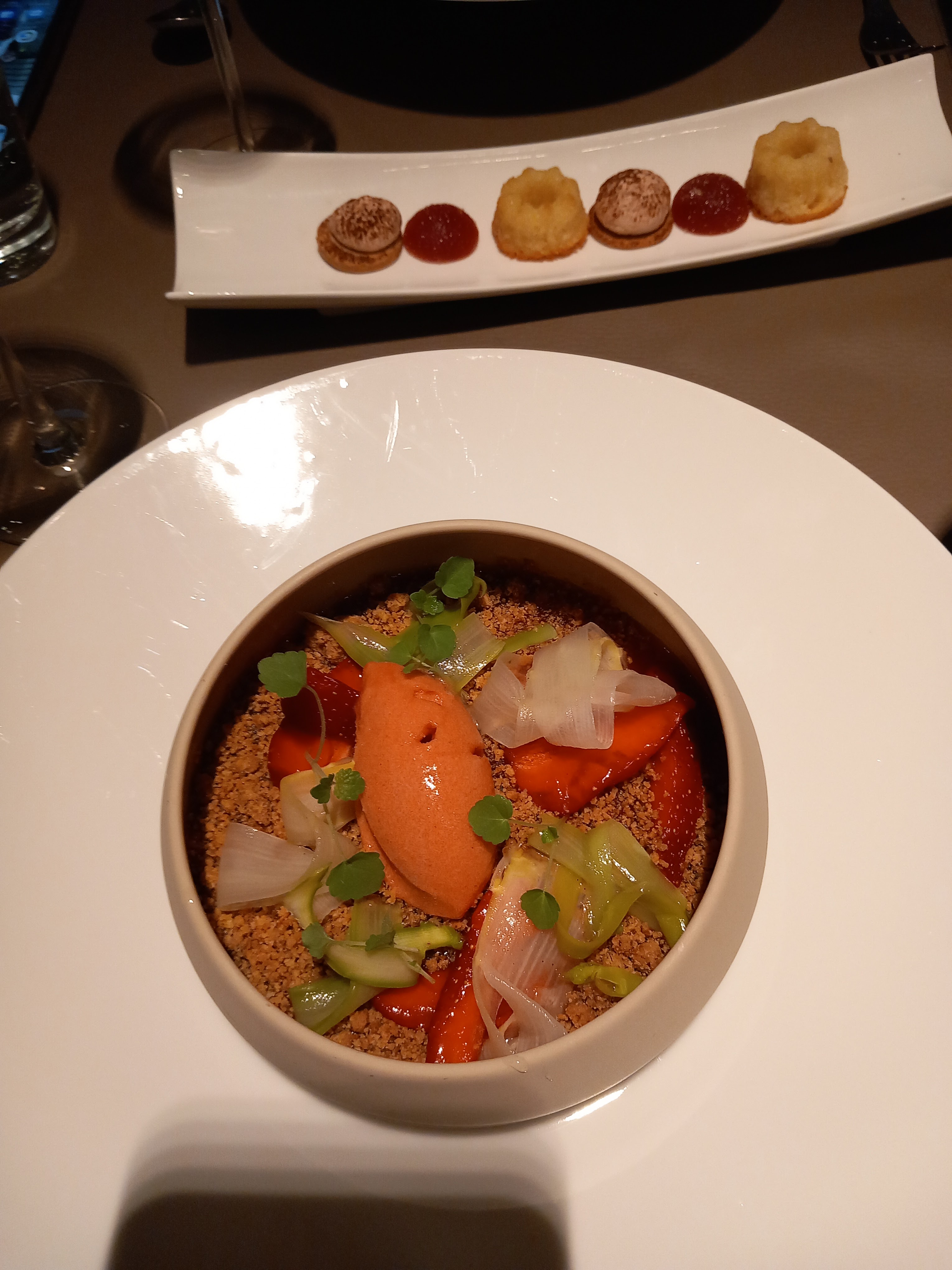 Déjeuner en famille. Menu fixé pour l'occasion. Amuse bouche: terrine de maquereaux, foie gras aux fruits rouges en entrée suivi d'un plat viande saignante avec une tatin échalotes betterave et un fraisier en dessert. Tout a été délicieux. Les vins étaient légers mais très bien en accord avec le menu