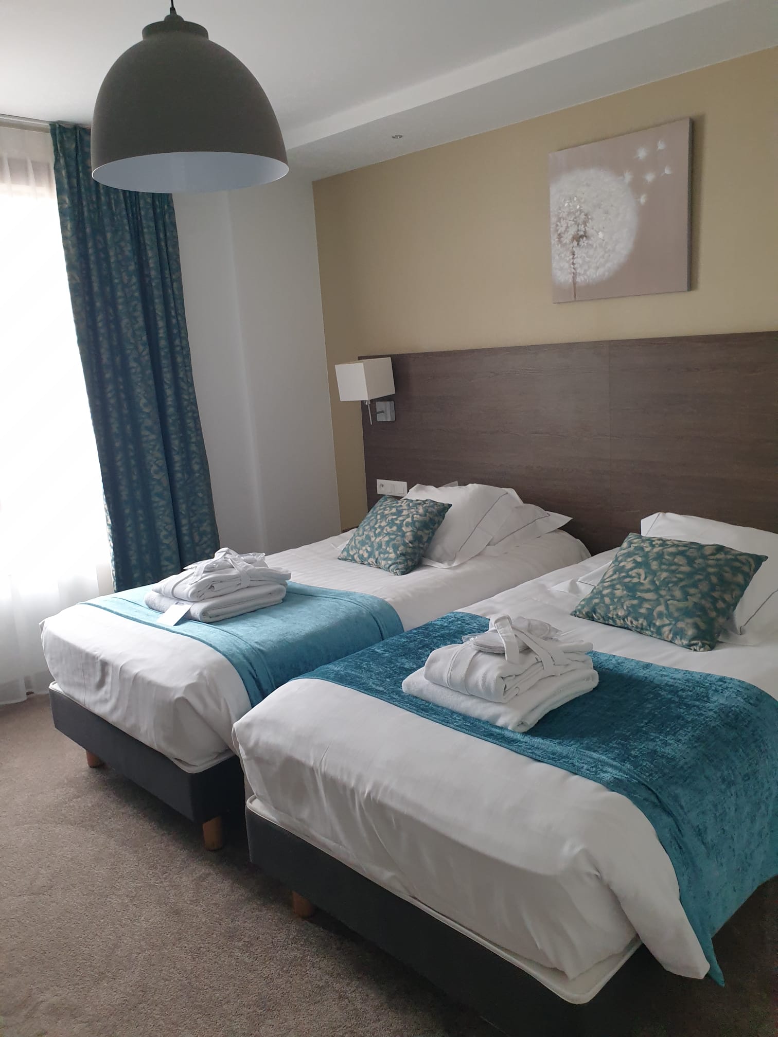 Chambre agréable et propre malgré peut être un manque d'isolation au niveau des fenêtres, mais quelle déception pour l'espace bien être (piscine, spa) : une impression d'être à la piscine municipale. Qu'il y ai des enfants pas de souci, c'est tout à fait normal, mais quand à leurs comportements c'est tout bonnement inadmissible : cris, sauts , chahuts (avec les parents bien souvent !!!) quel dommage ..... certes on nous répond que nous étions là en période de vacances scolaires ou en WE et qu'il faut venir en dehors de ses périodes; réponse qui est bien déplacée de la part du personnel de l'accueil !! Nous travaillons nous aussi pour pouvoir profiter d'un WE de repos me semble t-il ?