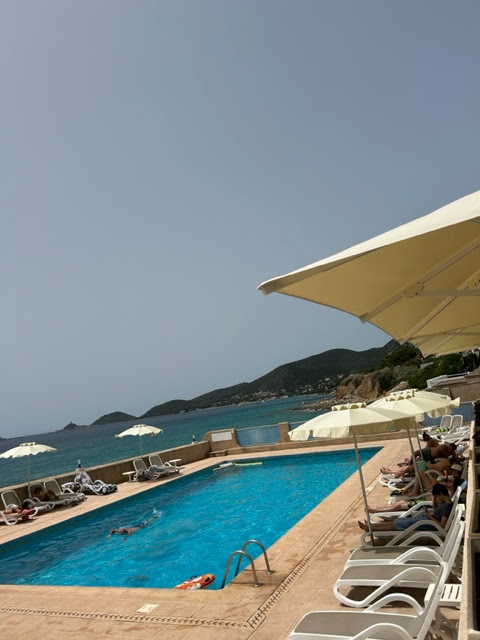 un superbe hôtel ! avec mes parents nous avions eux une chambre vue sur mer, la vue est vraiment splendide rien à dire ! le petit déjeuner super bien de 7h à 10h avec de tout crêpe, miel de corse, jus, céréales, etc.. le midi c’était vraiment bon il y’a de tout ! bien sûr quelques bémols la piscine un peu trop profonde mais très bien pour nager ( 2m70 et 2m30 ) et une plage avec beaucoup de cailloux mais ceci n’est pas dramatique, les serveurs très gentils et à l’écoute des gens, ainsi que le personnel qui est tout aussi gentil, l’es transats très confortables, les femmes de ménages vraiment trop sympathiques et elles font leurs boulot à merveille, plus de saleté le soir :) une semaine de rêve l’as bas j’y retourne sans hésiter, il mérite même 4 étoiles ! ⚠️ toutes les chambres ne sont pas vue sur mer il faut le préciser quand vous réservez ! les commentaires qui disent que des méchancetés ne les écoutez pas c’était vraiment incroyable et c’est juste pour nuire la réputation de l’hôtel et du restaurant.