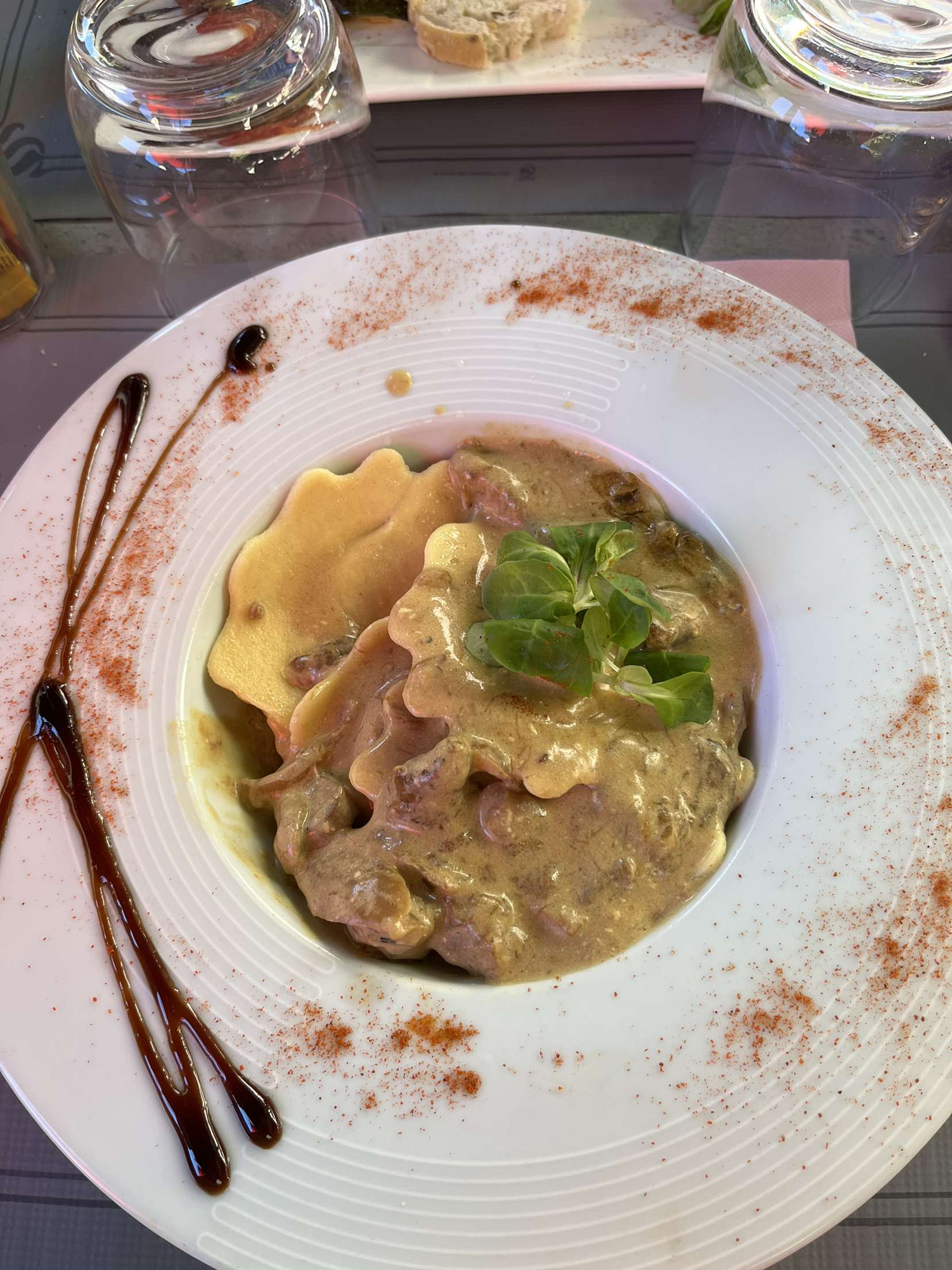 Nous avons très bien mangé avec mon compagnon et notre jeune montagne des Pyrénées a même reçu une gamelle d'eau et une place confortable pour s'installer pendant le repas. Service au top. Merci beaucoup.