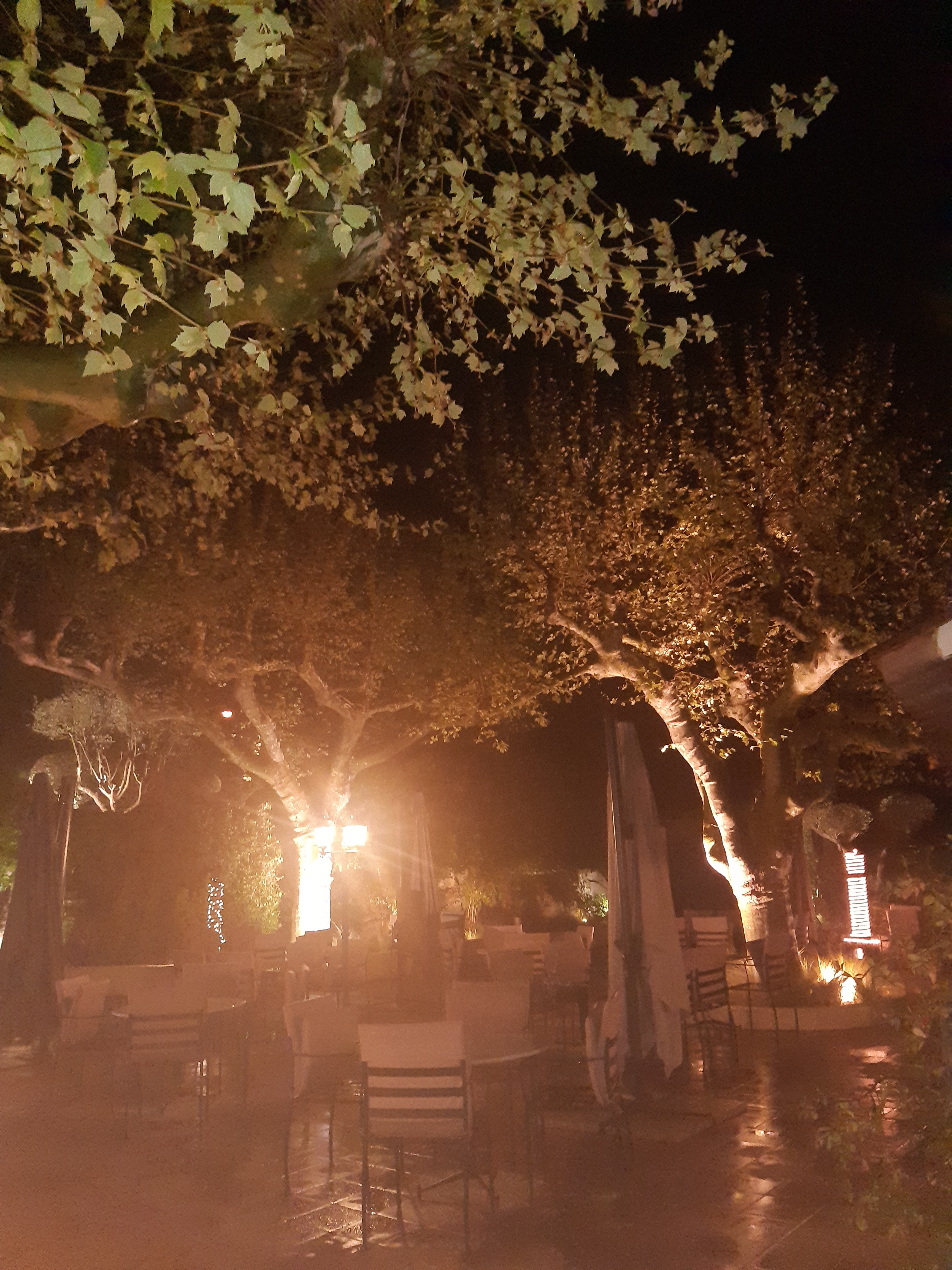 Bon restaurant dans un cadre idyllique (patio sous les arbres) Bon service
