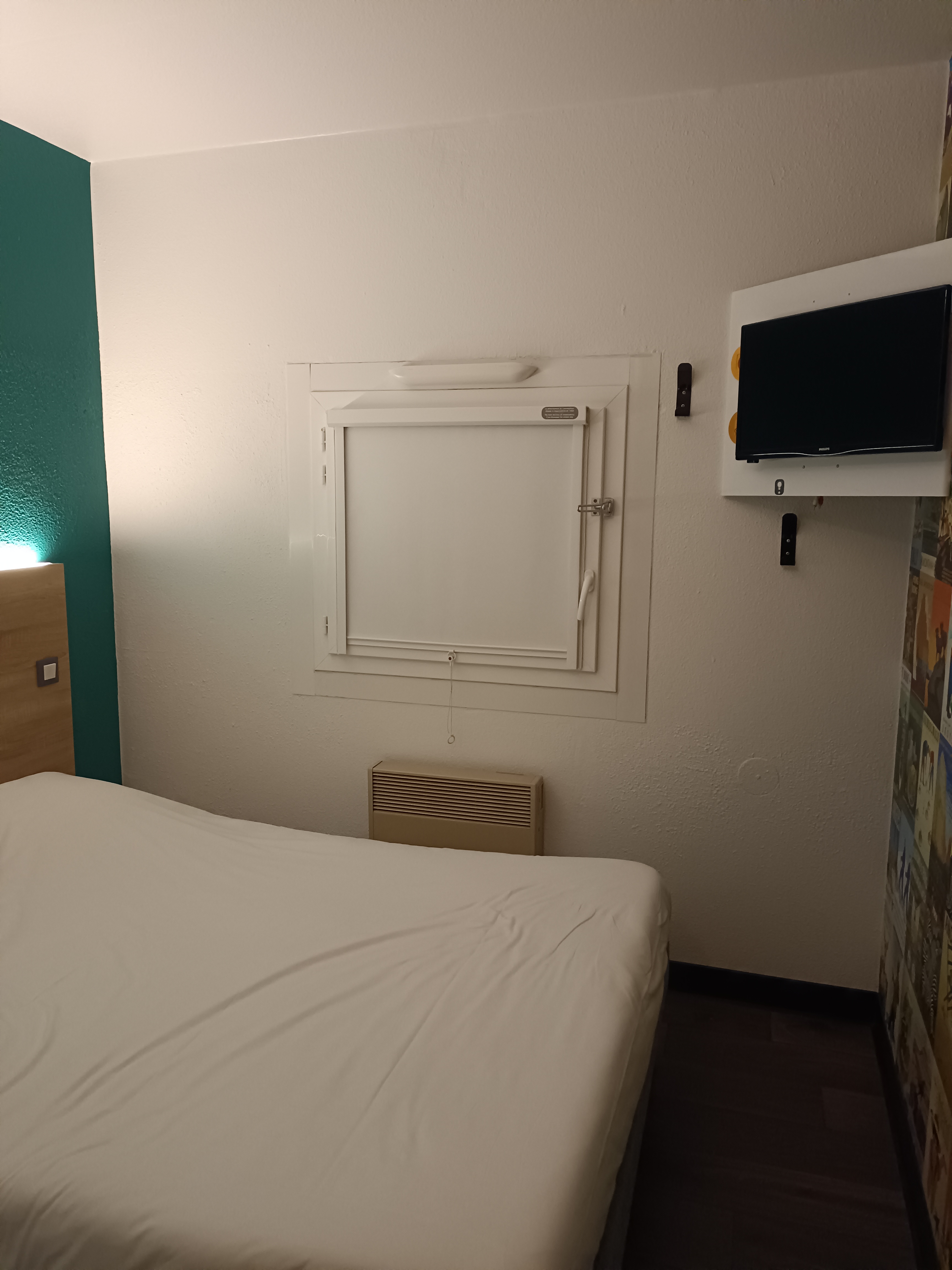 Pas de clim, personne à l'accueil qui n'avait pas compris m'a demande initiale, du coup j'ai été obligé de retourner à l'accueil pour faire changer ça, elle a du appeler son chef pour me rembourser la différence de prix mais au départ me disais qu'elle ne pouvait pas. J'y suis restée une seule nuit et cela était bien assez. Obligé de faire son lit en arrivant ( pas cool après 6h de route), matelas trop dur pour moi, une chaleur pas possible dans la chambre (obligé d'ouvrir la fenêtre et la porte pour faire rentrer le frais), WC ( toujours assise mouillé ggrrr) et salle de bain pas très propre (avant 20h). Obligé de prendre la douche handicapés et faut se coller au mur pour pouvoir avoir un semblant d'eau, on ne peut pas décroché le pommeau donc je déconseille pour une personne handicapée. Donc voilà à se prix je recommande pas. Vaut mieux payer un peu plus cher pour être bien 😉. Ah et le prix c'est pas 45€ faut ajouter les taxes de séjours qui diffère si vous plus d'adultes ou non