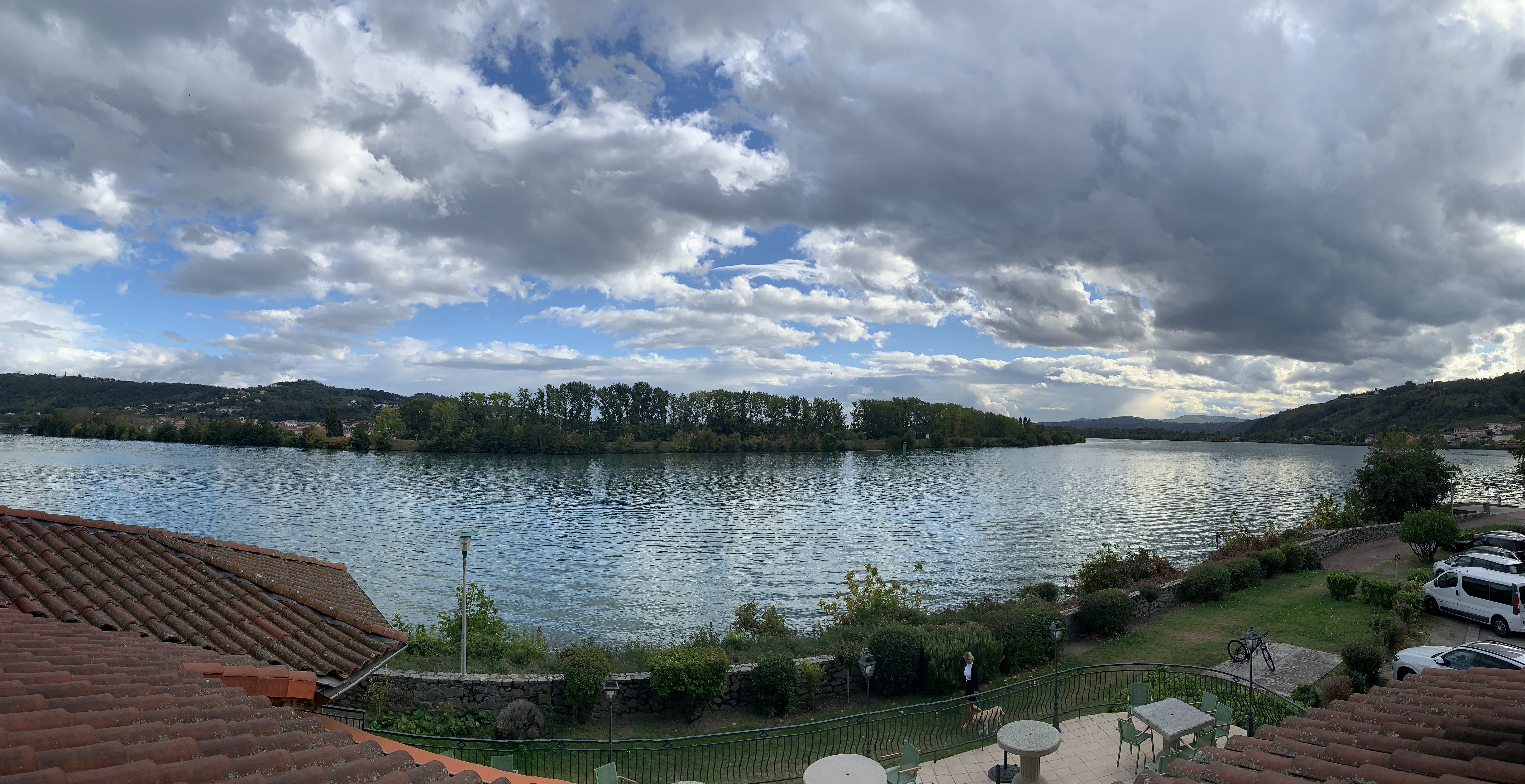 Il faut absolument y séjourner pour voir le jour se lever sur le Rhône, majestueux à Condrieu ! S'y ajoute une excellente cuisine gastronomique, un personnel dévoué, simple et très aimable. Chambre de très bonne taille, propreté irréprochable, un peu désuète dans sa déco (napperons sous les lampes de chevet), mais vraiment un bon hôtel qui héberge une excellente table !