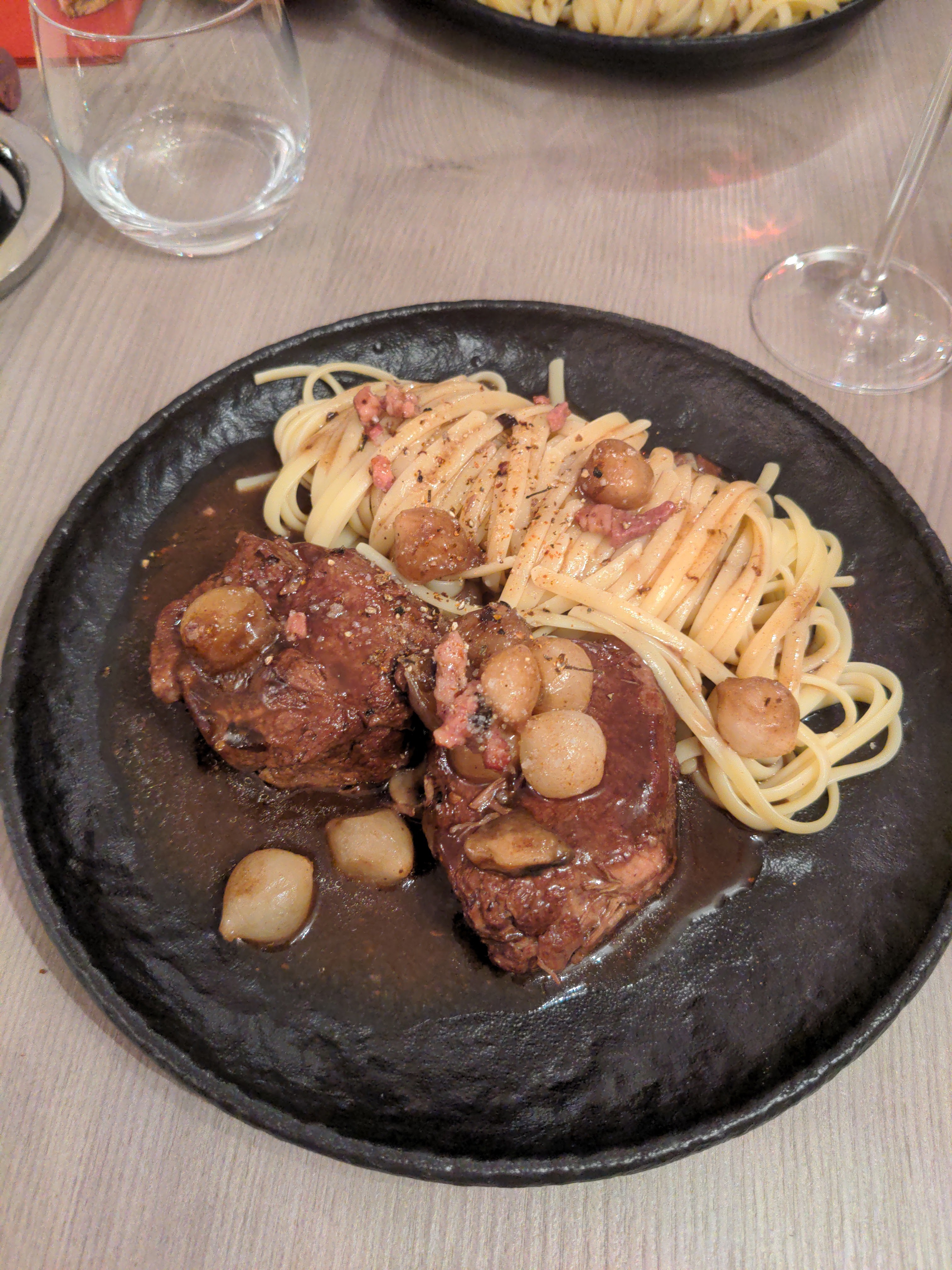 Difficile de trouver un restaurant ouvert le lundi. Nous voyons cet établissement sur la route. La carte est simple, 4 plats, c’est bon signe. Un paleron mijote juste délicieux avec des tagliatelles. Simple, goûteux, un régal. Une glace artisanale au chocolat pour ma fille, la tarte au citron acide comme il faut. Bravo !