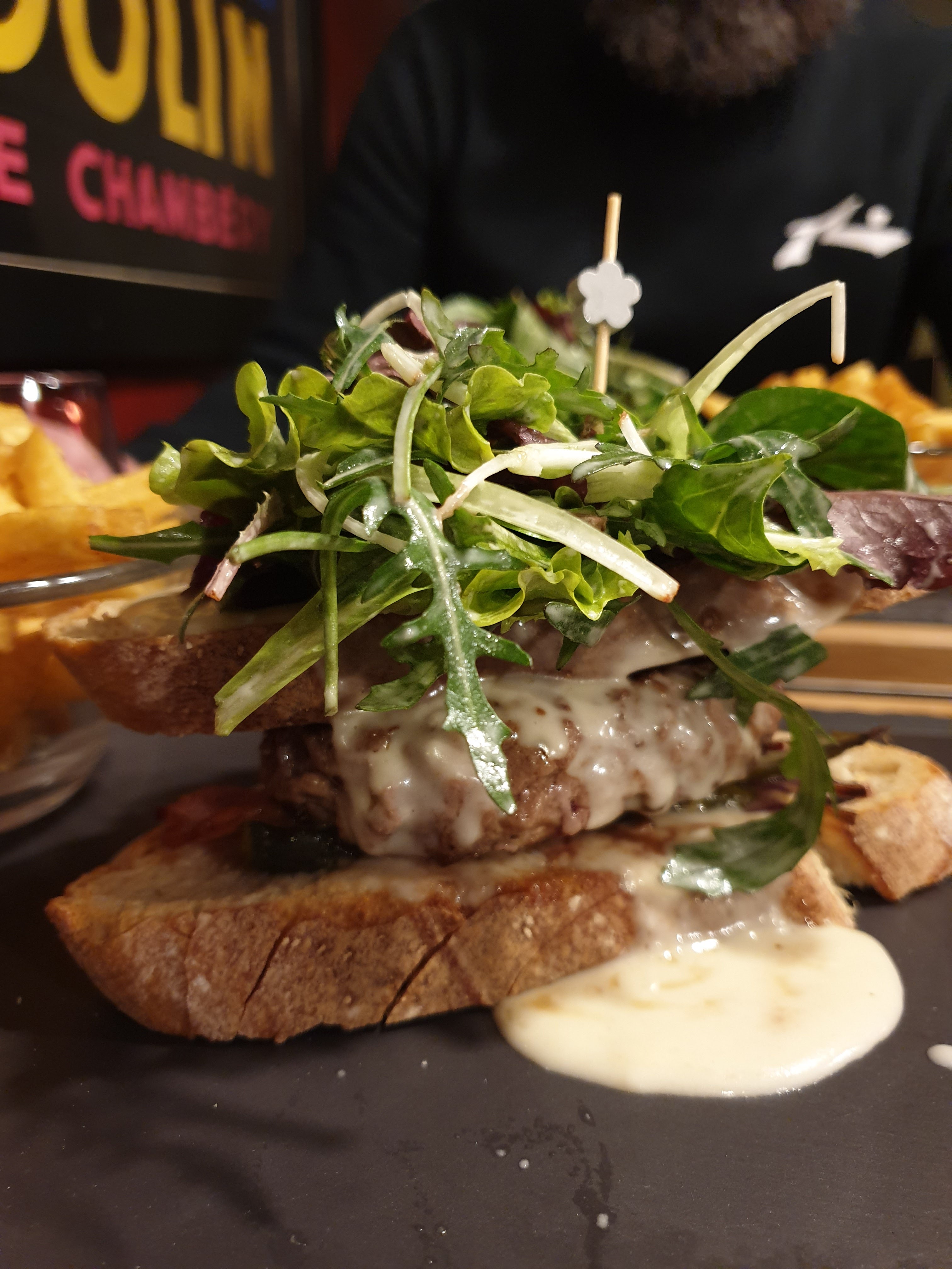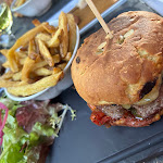 Un verre au bar super sympa, ambiance et déco au top , on s'y sent bien rapidement ! Ensuite repas au restaurant dans une salle également très bien décorée ! Les serveurs sont vraiment super sympa ce qui a participé à passer un excellent repas. Le burger était plutôt original et de très bonne qualité accompagné de frites maison. En dessert sur recommandations , le cookie gourmand était magique ! Prix un peu élevé mais la qualité est la ! Nous reviendrons avec plaisir !