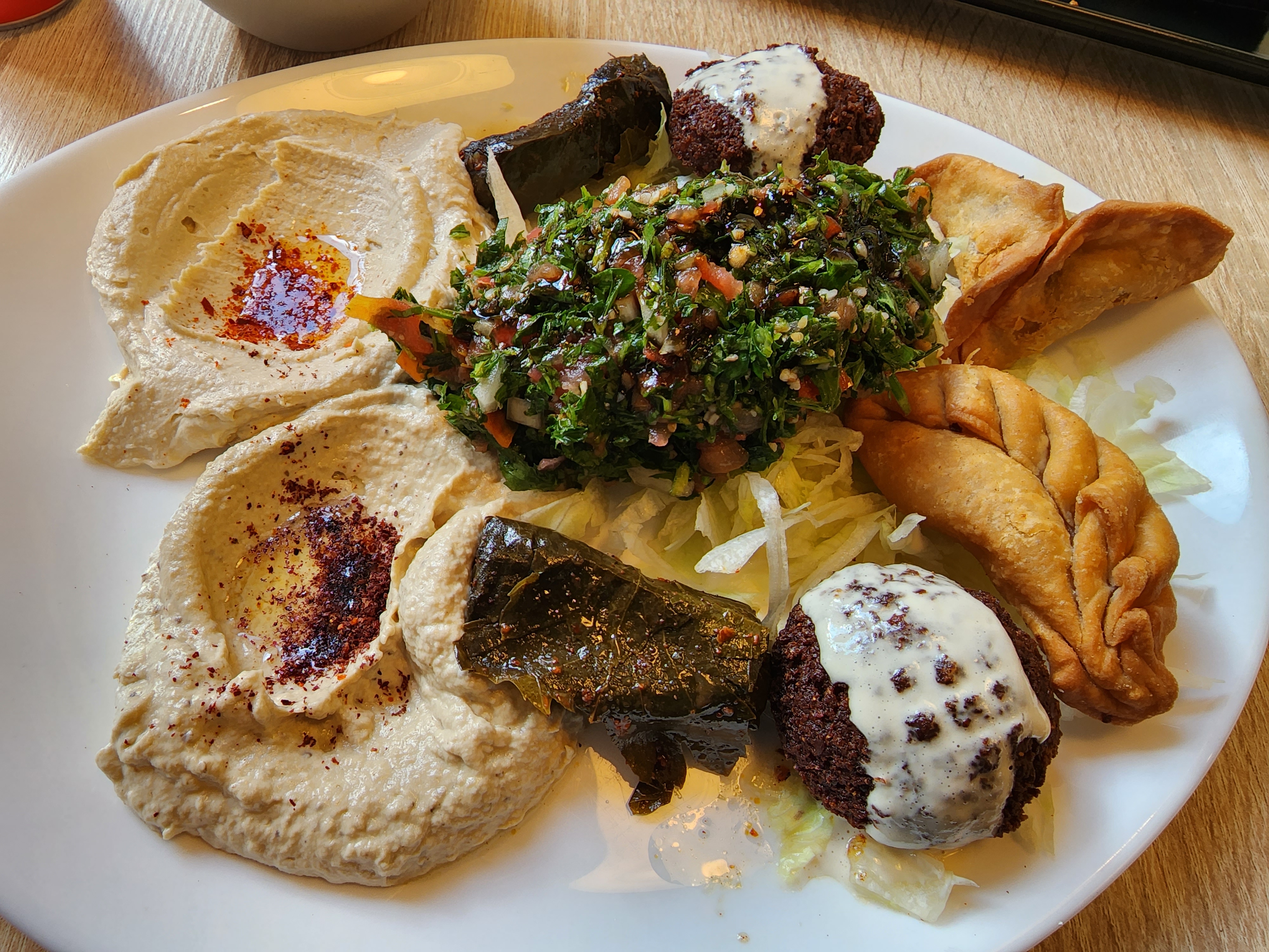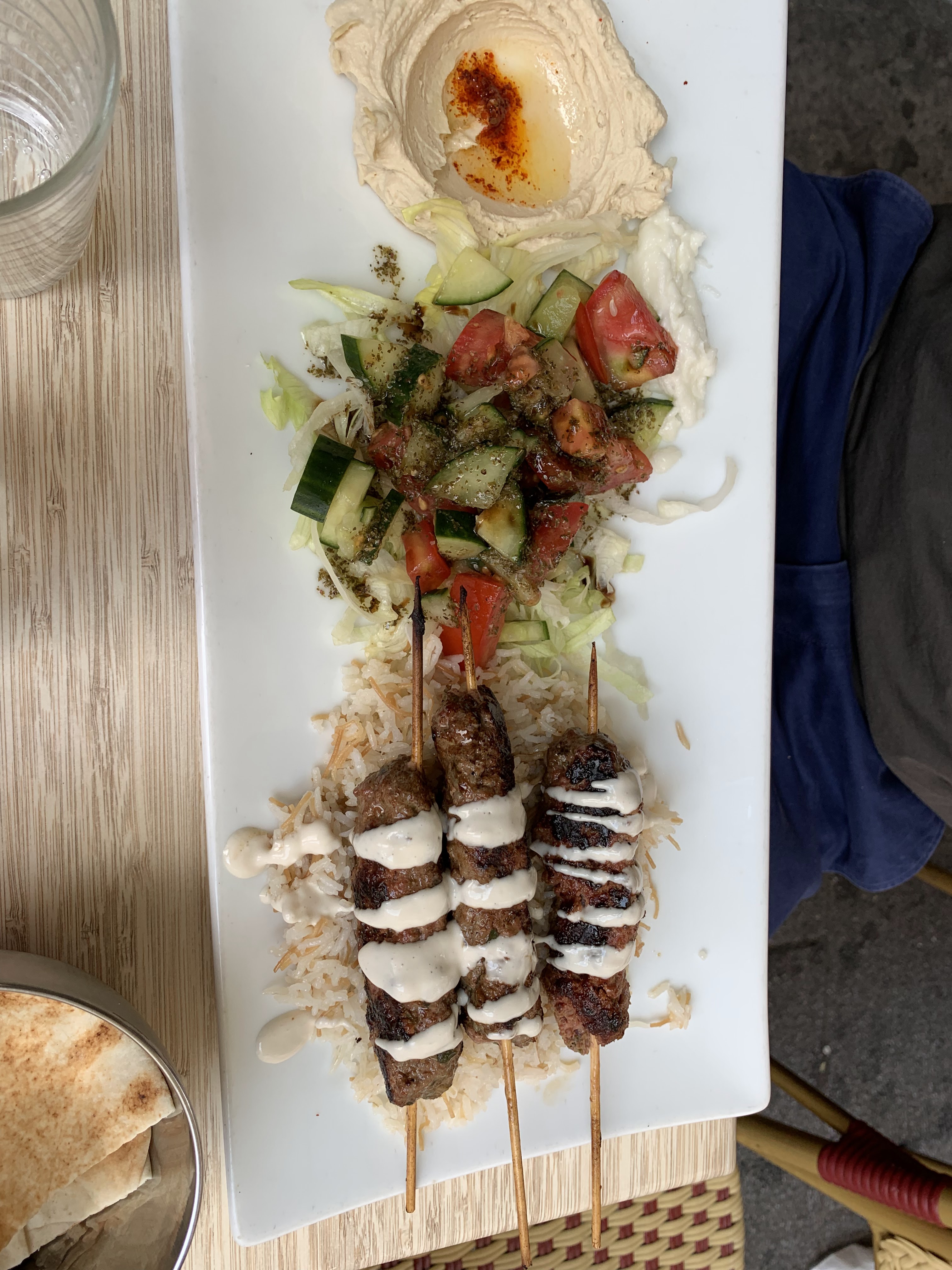 Excellente nourriture. Nous avons commandé une assiette classique et une assiette kafta. Le houmous, le taboulé, les falafels et le kafta étaient tous très authentiques. Les deux plats coûtaient 9,5 euros chacun.