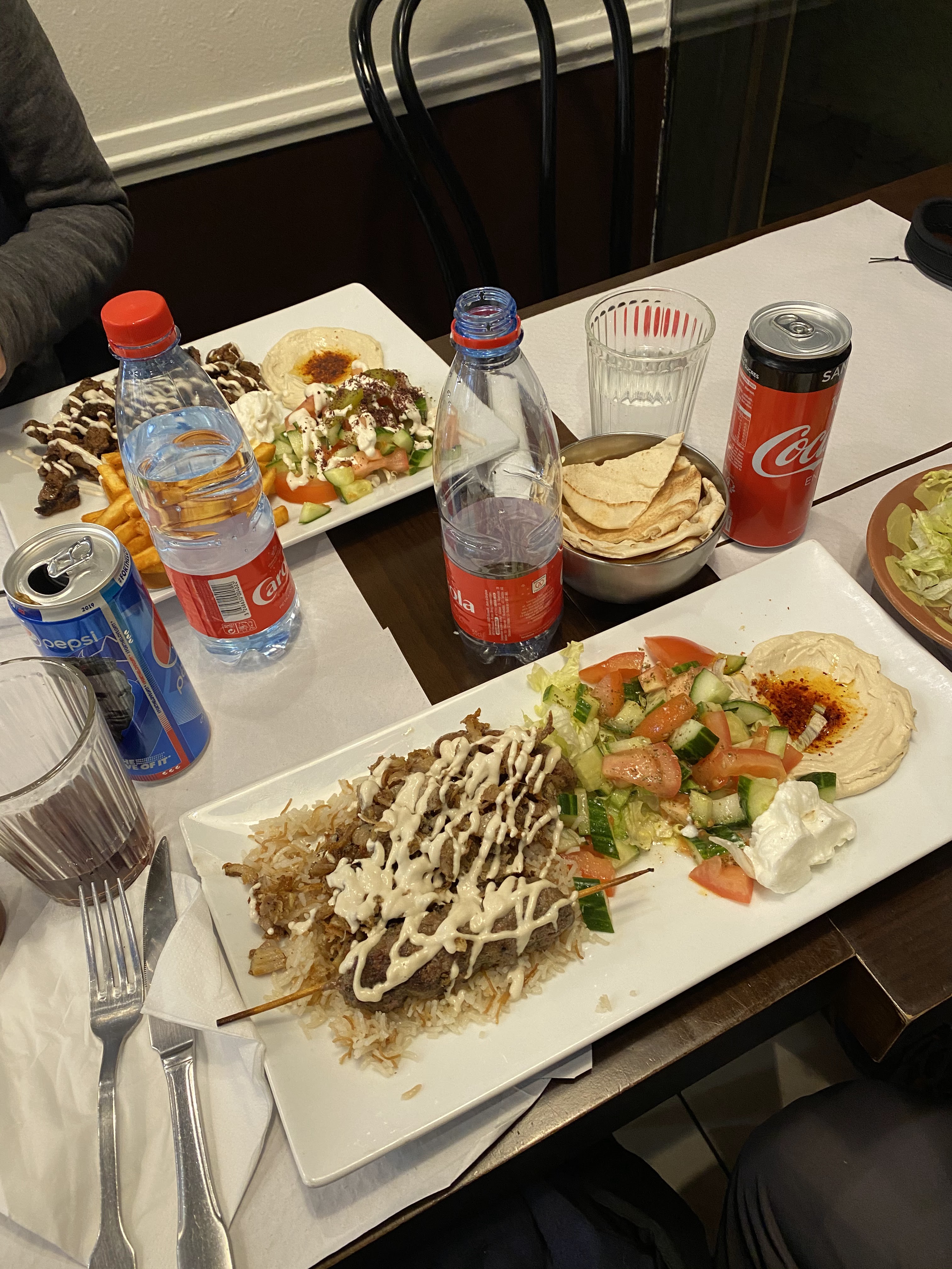 Leur hummus est très très bon, mais malheureusement, je n'ai pas été fan plus que ça. Les frites aussi ne sont pas vraiment croustillantes, donc même si de goût, c'est trop bon de les tremper dans leur hummus, la texture est moyenne (elles sont soggy, comme on dit). Certaines portions (les assiettes) sont plutôt petite pour le prix et la viande shawarma n'est rien vraiment de spécial. Mais ce n'est que mon opinion, car mon copain a absolument adoré, il a tellement hâte qu'on y retourne et qu'il reprenne soit le mix de toutes leurs mezze, soit un bon shawarma poulet. On a été du même avis sur les desserts, ils ont bien été vendus, mais n'étaient pas ouf du tout. Perso, je vous conseille juste une bonne assiette de hummus là-bas😅