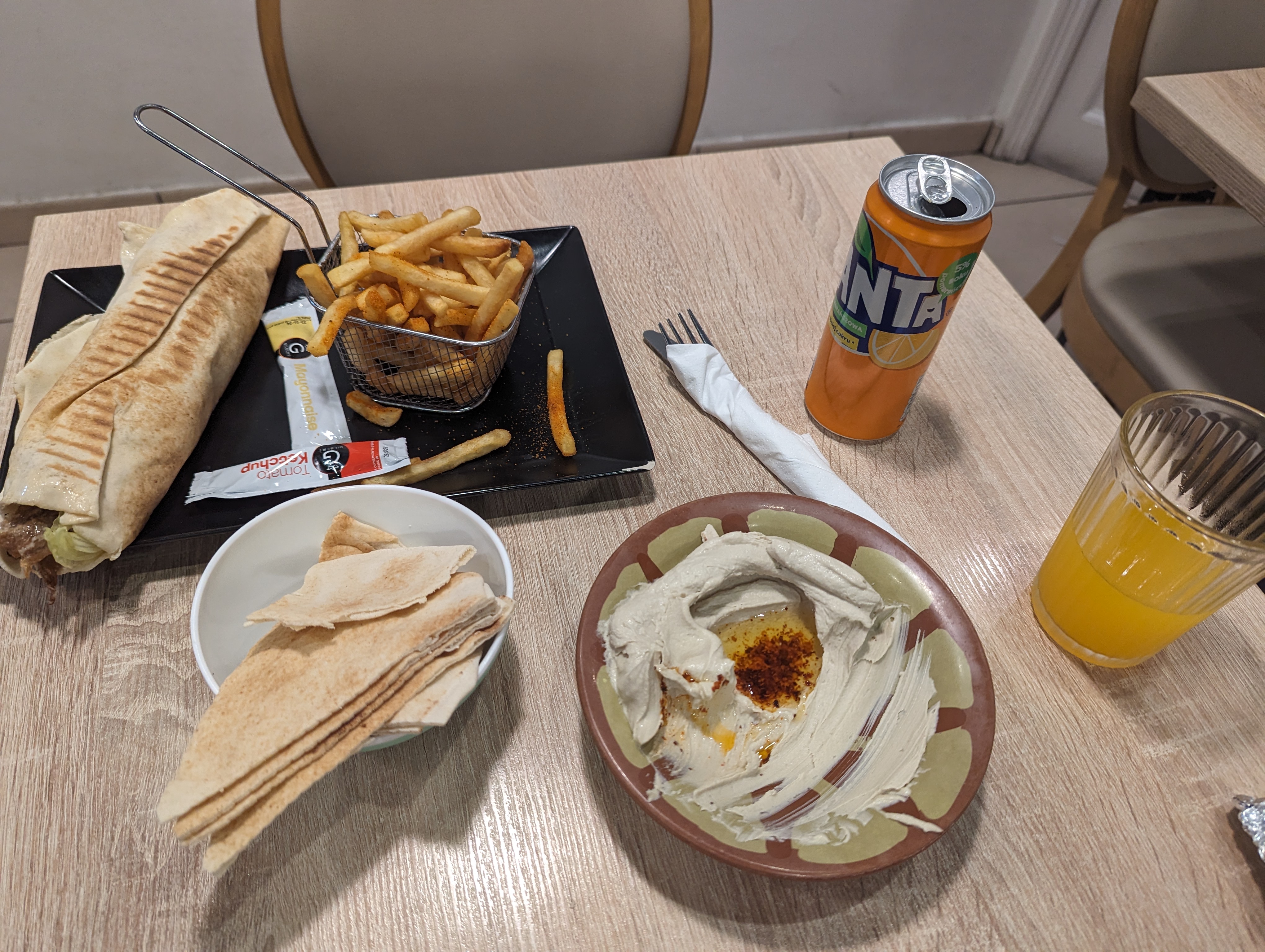Ouah! Nous avons passé un très bon moment à Houmous. La nourriture était spectaculaire (!!!!) et était proposée à un très bon prix. Le serveur était très gentil ; Je ne connaissais pas bien le français mais il ne m'a pas fait de mal. De plus, le service était très rapide.