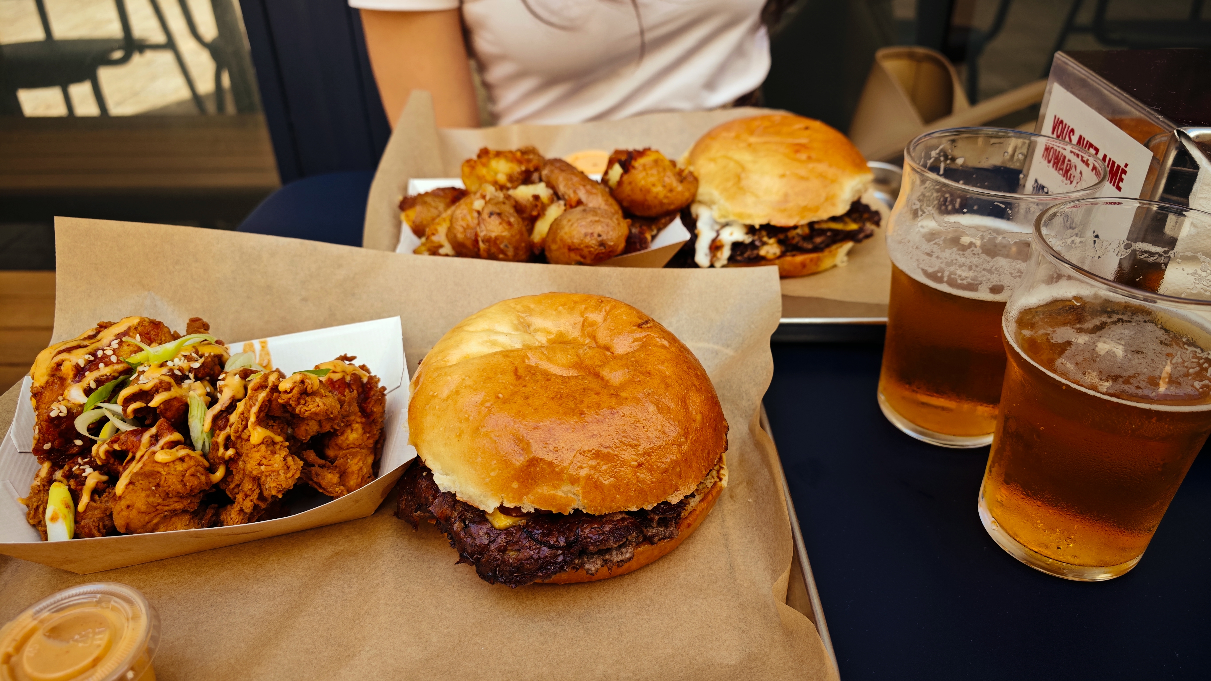 Nous avons été assez étonnés du prix qui nous paraissait élevé (20€ pour frites, burger) donc on s’attendait à quelque chose de vraiment incroyable. Et finalement… c’est assez moyen. Tout est très salé et du coup c’est assez écœurant. Les frites spicy ont surtout le goût de sel, idem pour le burger. Ça a vraiment gâché les saveurs.