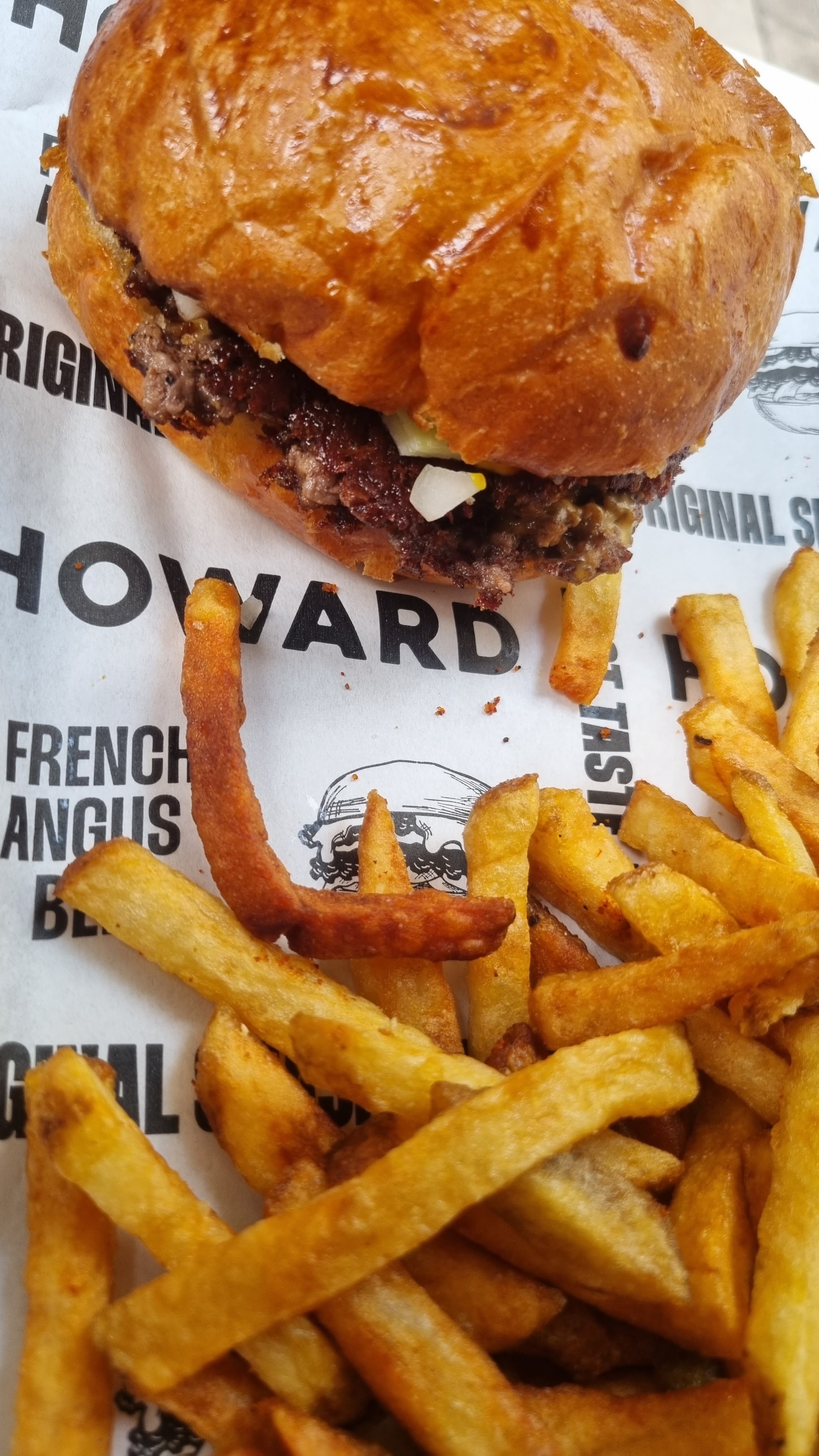 En promenade hier pendant ma pause dejeuné j’ai eu le plaisir de découvrir Howard. Mon conjoint et moi tout deux amoureux des burgers authentiques avons été agréablememt supris lorsque nous avons gouté au grand classique de la junk food, le cheeseburger. Quelle degustation, le pain est aérien et moelleux, le steak smash laisse place à un croustillant qui se mari si bien avec le fromage de chez Howard qui est d’après moi et mes experiences culinaires, un des fromages les plus goûtu dans un burger. Nous avons ensuite eu le plaisir de decouvrir une glace qui rappelle “le goût de notre enfance”. Une delicieuse crème glacée infusée au lait et aux céreales. Enfin, le personnel est très accueillant et souriant, malgré le rush du midi, ils resentent disponibles et prennent le temps d’échanger avec vous sur votre experience et votre avis. Une adresse que je n’oublirai pas, bravo à vous et belle continuation à Howard - Original Smash Burger !