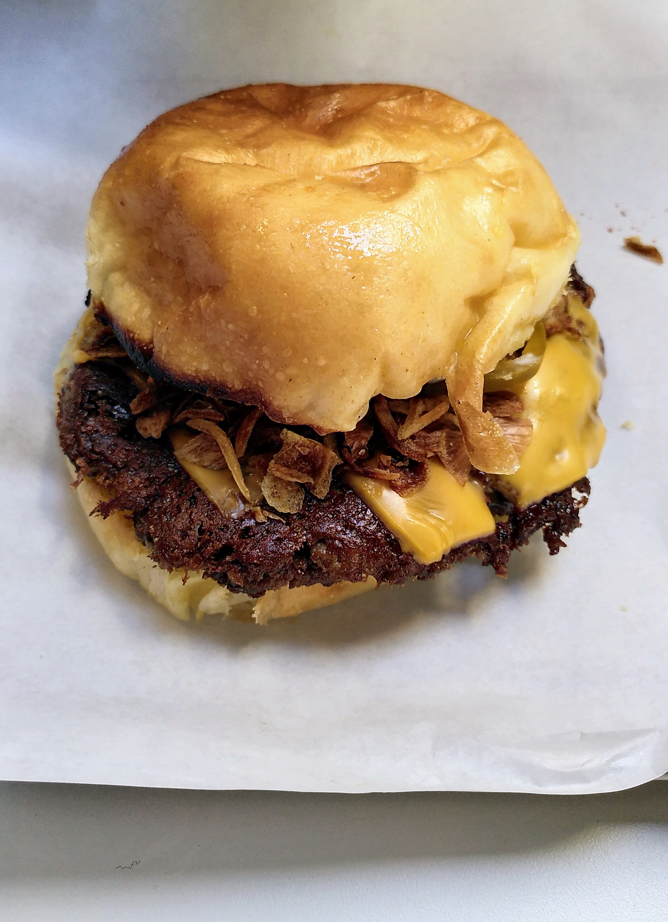 Tout simplement le meilleur burger de ma vie et j'en ai mangé un paquet. Le pain incroyable et bien toasté, cheddar de qualité, viande black angus smashée à la perfection ( viande croustillante mais juteuse ) et légumes frais bref un régal je recommande à 1000% bravo ;)
