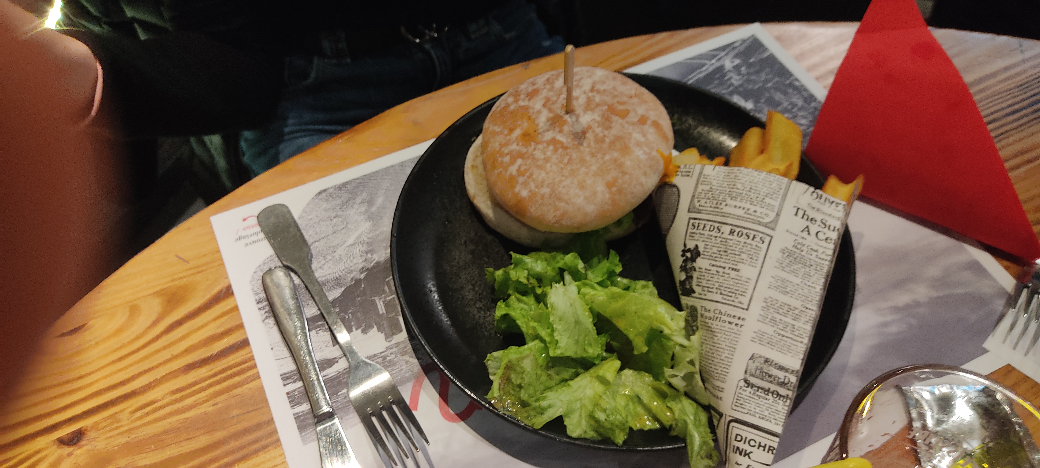Des l’entrée remarque un peu limite du personnel « finalement vous êtes revenus » ayant fait le tour de la zone juste avant pour trouver le restaurant où nous irons dîner avec mes amis. Personnel un peu au oppressant à la limite de venir nous tenir nos fourchettes pour manger. Quand à la qualité de la nourriture , après ce repas , mon centre n’a cessé de faire des bruits étranges tél un Boeing 747 en plein décollage. Mal de ventre toute la soirée , goût de la nourriture camouflé par une tonne de sauce mise dans mon Burger. Seul point positif le cadre est pas mal , assez original. Bien évidemment je ne recommande pas.