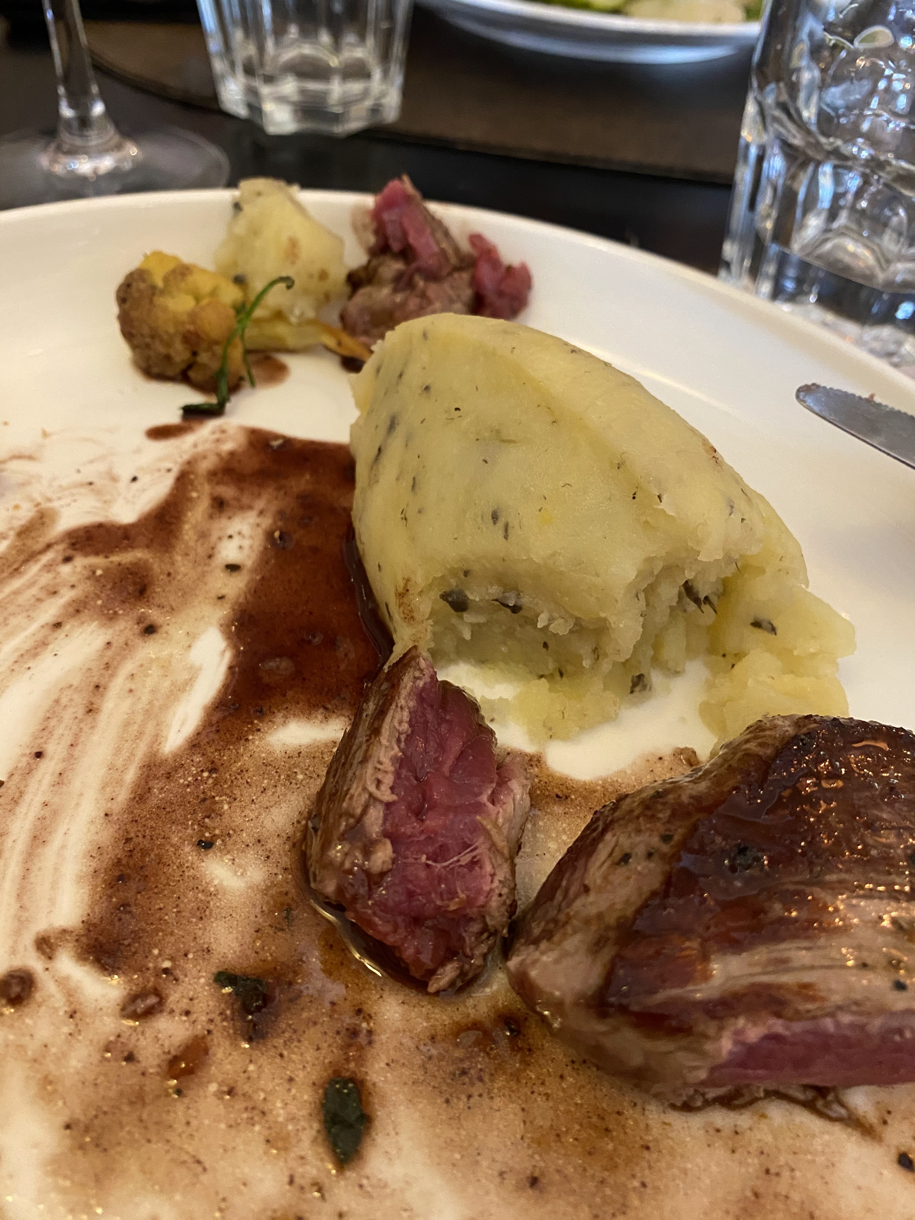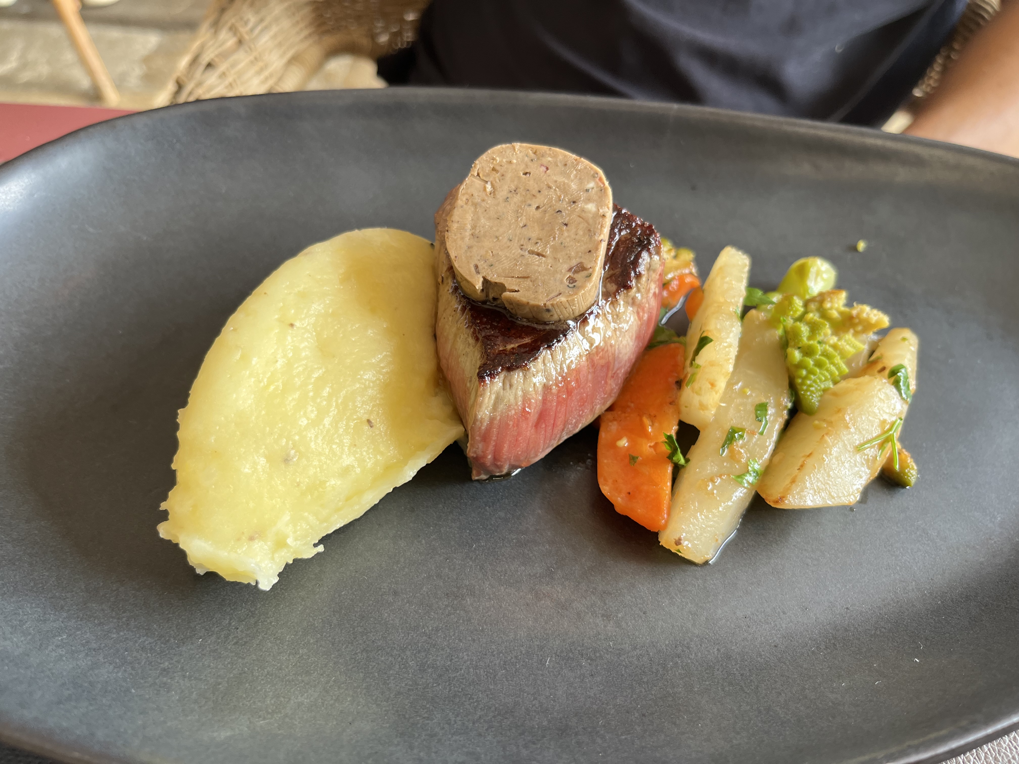 Super bonne cuisine , bœuf de Bazas , purée de pomme de terre à la truffe hyper bonne alors que je suis pas truffe de base . Chapeaux 🎩