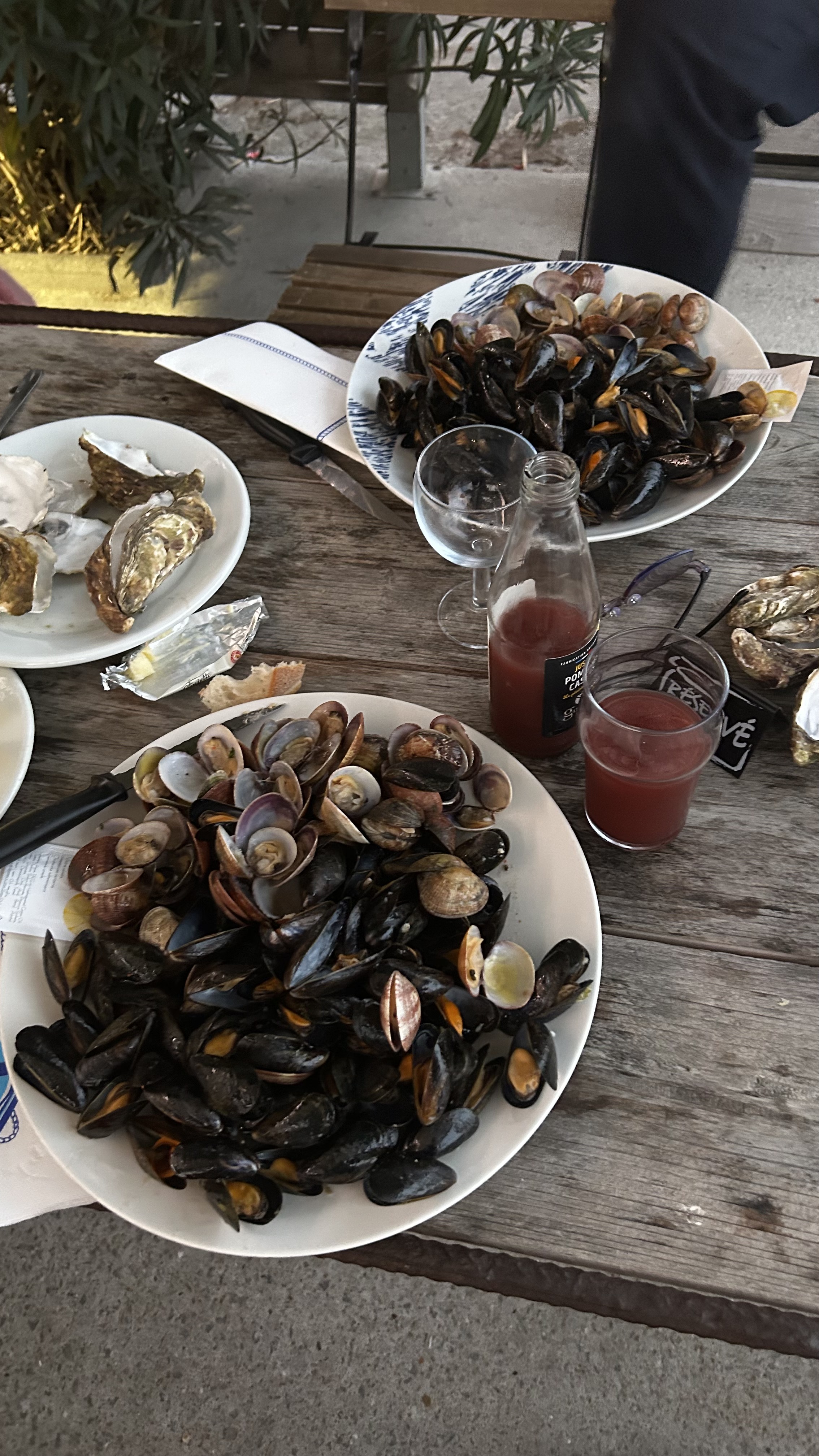 Bonne dégustation de palourdes moules à la plancha .les huîtres étaient très bonnes à conseiller
