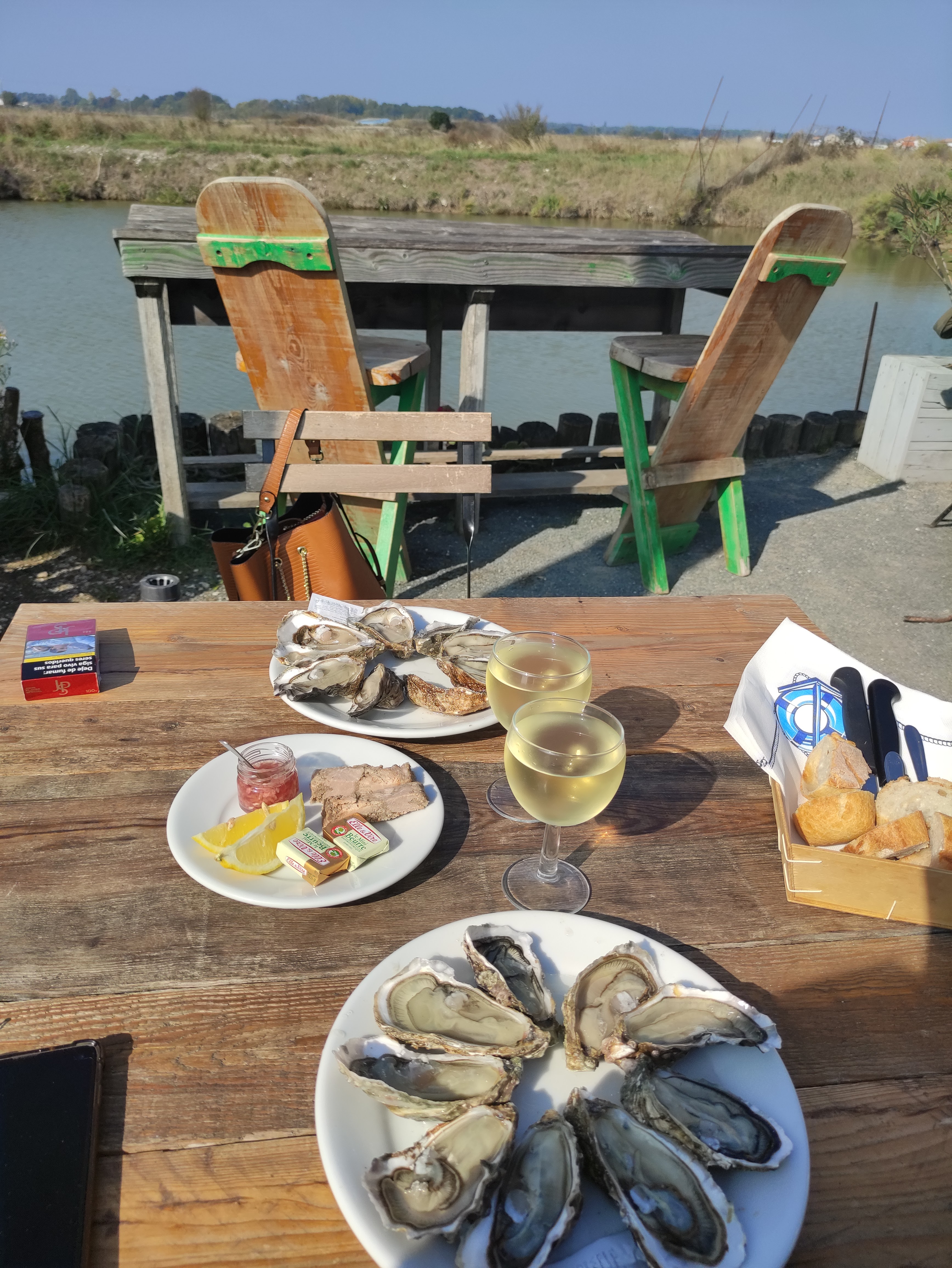 Une superbe expérience : Fin de journée d'été, installé au bord de l'eau avec une 12aine d'huîtres (numéro 3), un peu de pain , de beurre et du grillon (sorte de rillettes, en plus léger). Non seulement je me suis régalé les papilles, mais j'ai également passé un formidable moment de plénitude. Petit vent chaud, magnifique vue, chant des mouettes et plaisir de profiter d'un moment simple mais juste délicieux. Ne ratez ça pour rien au monde :-)
