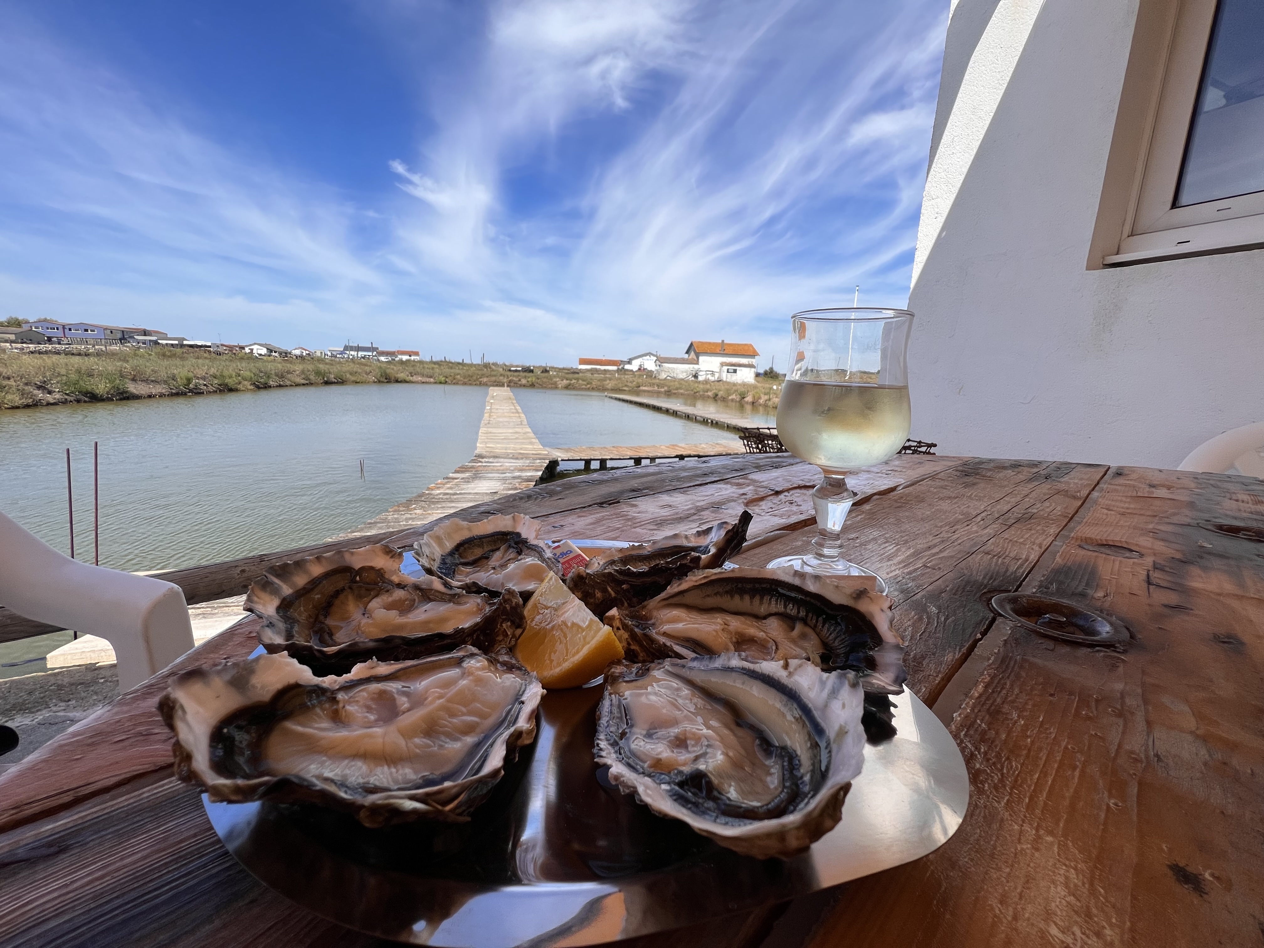 Huîtres fraîches et vin blanc charentais, une parfaite petite pause bienvenue sur la route des vacances !! 😋