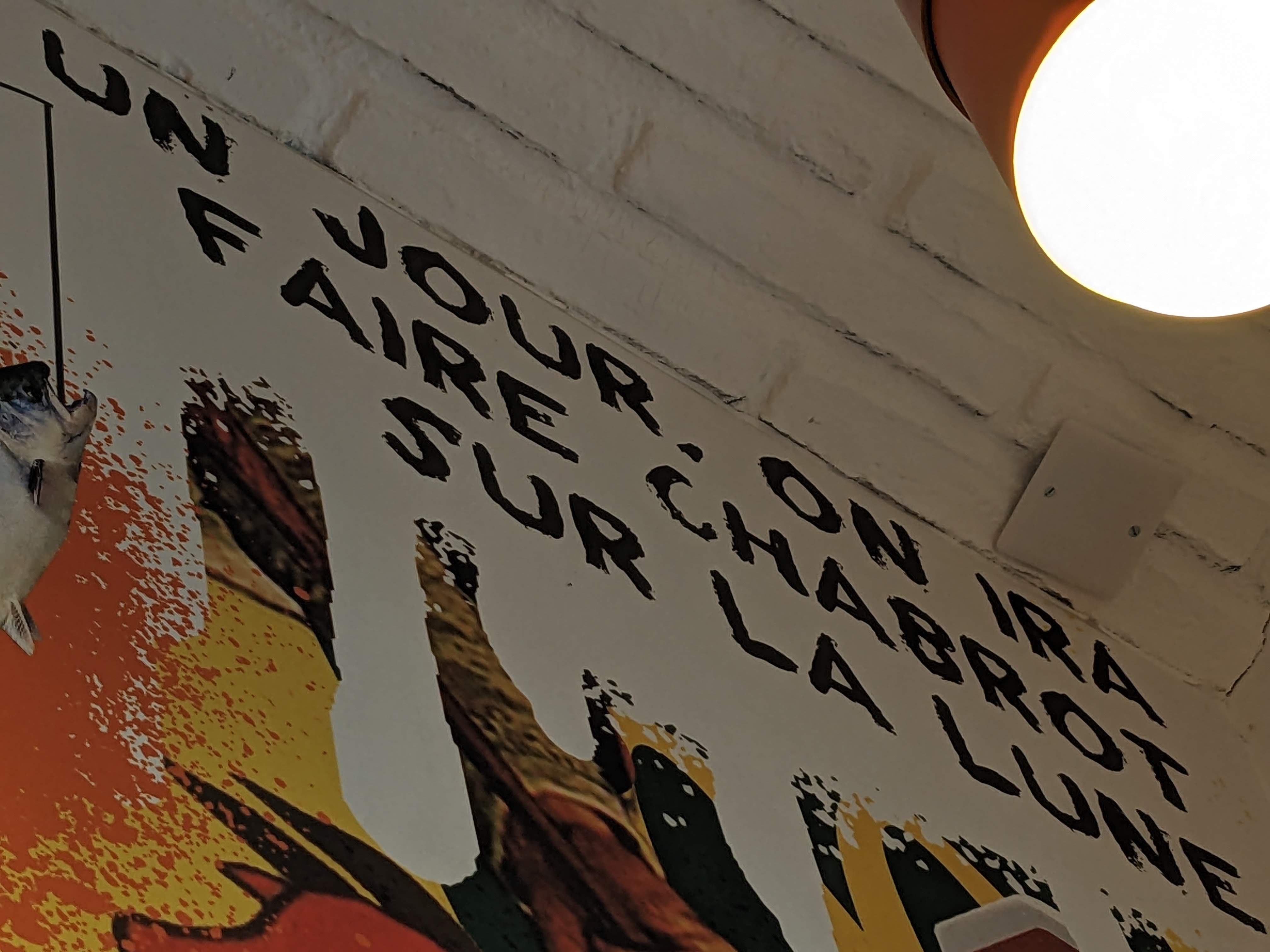 Nous venons de dîner sur place. Les locaux sont sympa avec une déco plein de pep's. Malheureusement ça s'arrête à ça. Le repas est juste moyen. Pour moi ce n'est pas aboutit, la blanquette de veau n'a pas le goût d'une blanquette et est noyée dans de la purée....triste résultat rappelant un hachis raté. Mon entrée était goûteuse et respectait l'énoncé avec ses notes de citron. Mon dessert, le baba tout comme la mousse au chocolat et le riz au lait sont décevant. La bière locale, sans gaz n'est pas top. Seul le jambon est bon. Note de 49,5€ pour 3 menus dont 2 avec bière et un avec eau du robinet. Pas de carafe ou de fontaine d'eau à disposition. Dommage le concept est génial mais les plats pas finalisés. .
