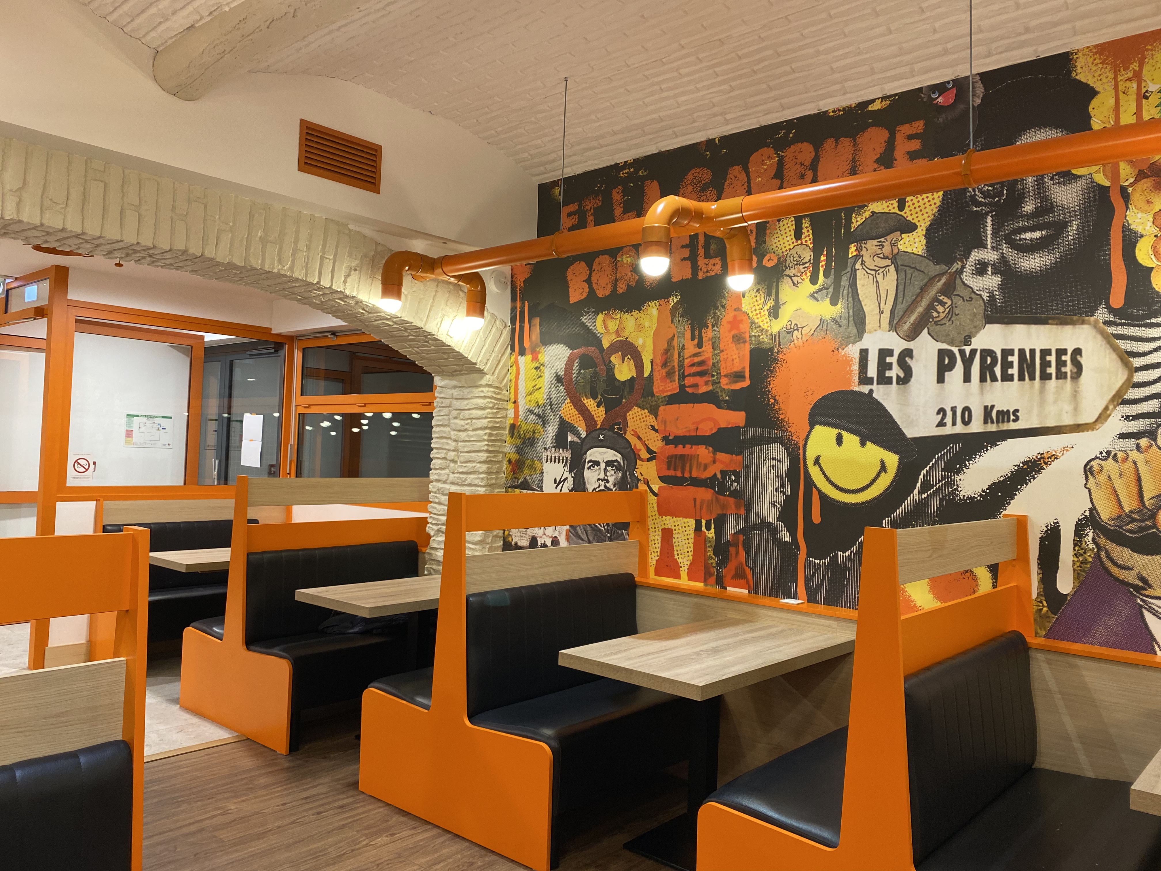 Tout d'abord, je salue l'initiative de marier la gastronomie régionale aux codes des fast food. Maintenant, par quoi commencer... Plusieurs choses : - les écrans de commande sont très mal placés: j'ai attendu plusieurs minutes au comptoir , avec d'autres personnes , sans que personne du personnel ne m'indique l'existence de ces écrans. Il y a des écritures au mur partout autour de l'écran mais rien qui indique que nous pouvons y passer commande. Il aurait été bien plus évident de les positionner sur le mur face au comptoir , et par la même occasion, supprimer ces tables et chaises hautes inconfortables. Et formez votre personnel pour les rediriger vers les écrans !! - il y donc ces écrans de commande (mal placés) mais on peut également commander au comptoir : aucun intérêt de faire prendre du temps à une ressource qui va expliquer pendant plusieurs minutes (lorsqu'elle a le temps entre 2 préparations) ce que l'écran via son menu explique très bien en quelques secondes. Faites soit l'un, soit l'autre mais à faire les deux, cela laisse le client sans trop savoir quoi faire et à qui s'adresser pour commander. Ca a été mon cas et celui de plusieurs personnes avant et après moi. - j'ai remarqué que des clients ont eu un verre de vin en attendant leur plateau : faites un espace bar/tapas où vous pourrez y proposer vos NIAC HUM et présenter la carte des vins. - concernant la nourriture, je crois qu'à l'unanimité (voir autres commentaires), votre émulsion de patate est bien trop liquide. On se retrouve à farfouiller au fond du mug pour chercher autre chose que la purée et le plat finit en une sorte de smoothie salé. Il y a quelque chose à revoir avec cette purée, la changer par autre chose (des pommes sautées au gras de canard et ciboulette par exemple), ou le contenant à remplacer par une assiette. Enfin quelque chose pour éviter que tout se retrouve mélanger et difforme. C'est vraiment regrettable car vos plats sont bons. - pour finir, l'endroit où poser les plateaux n'est là aussi pas bien indiqué : un panneau au mur aurait suffit mais rien. Il y a plein d'écriture, la déco est foisonnante mais si vous voulez autonomiser vos clients (comme dans un fast food), vous devez mieux les orienter et former votre personnel à cela.