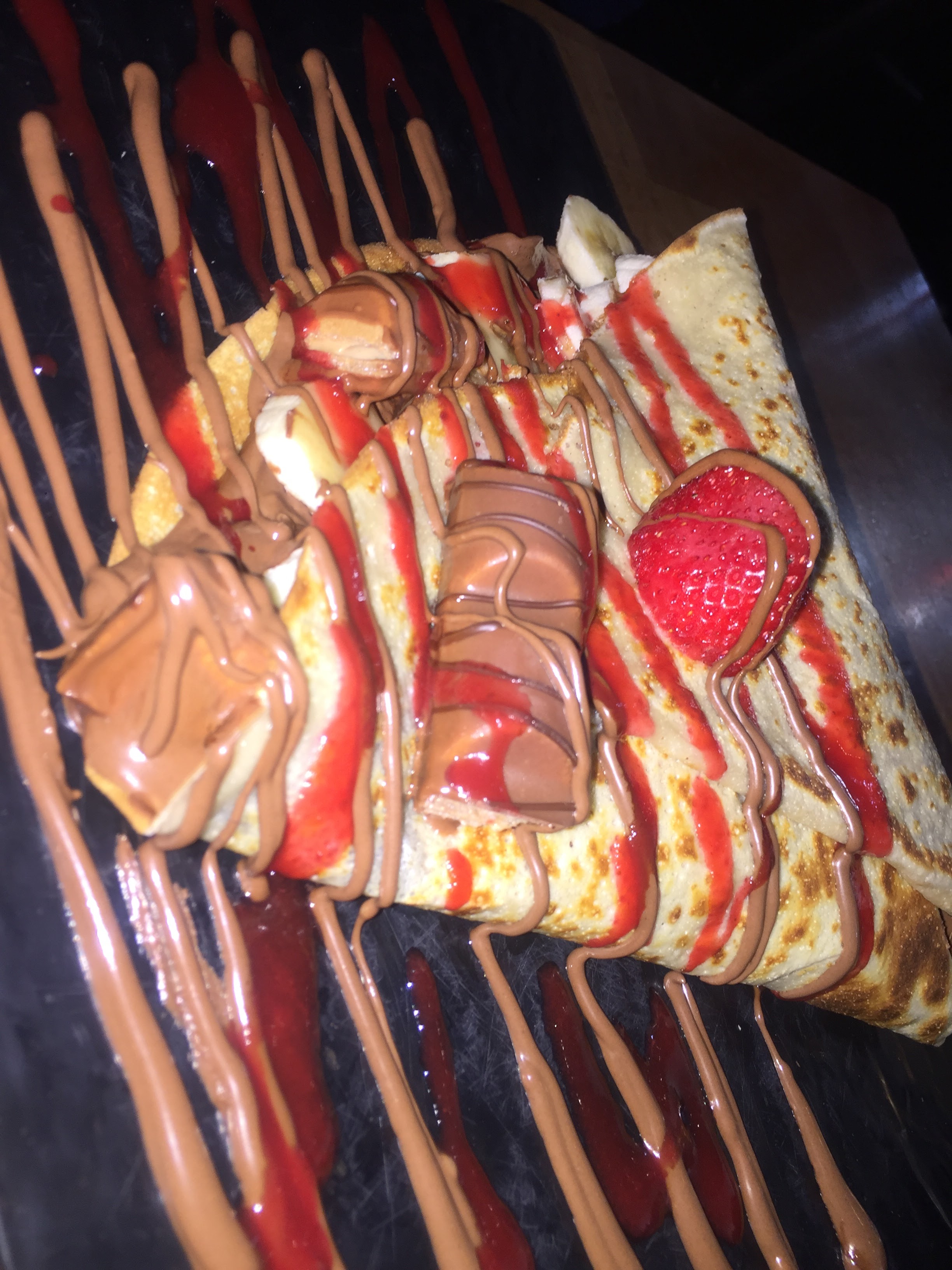 Désolée du therme mais sa pue sa mère les gars c’est vraiment pas bon g goûter les viande rouge elle sont sèche les crêpe elle sont à l’eau le Nutella on le vois même pas franchement à éviter il se trompe 2 fois dans notre commande faut pas abuser