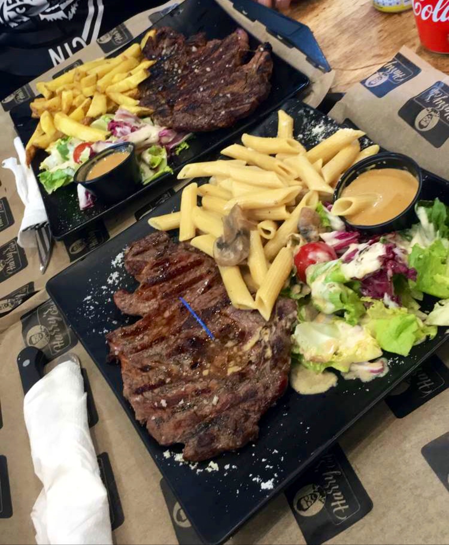 Venu ici suite avis de la Brigade Bons plats notamment viandes tendres: entrecôte avec sauce au poivre et escalope sauce forestière. En revanche, pour la salade on repassera elle manque clairement de fraîcheur (plusieurs feuilles noircies) La pizza quatre fromage est bonne mais les bords sont beaucoup trop épais