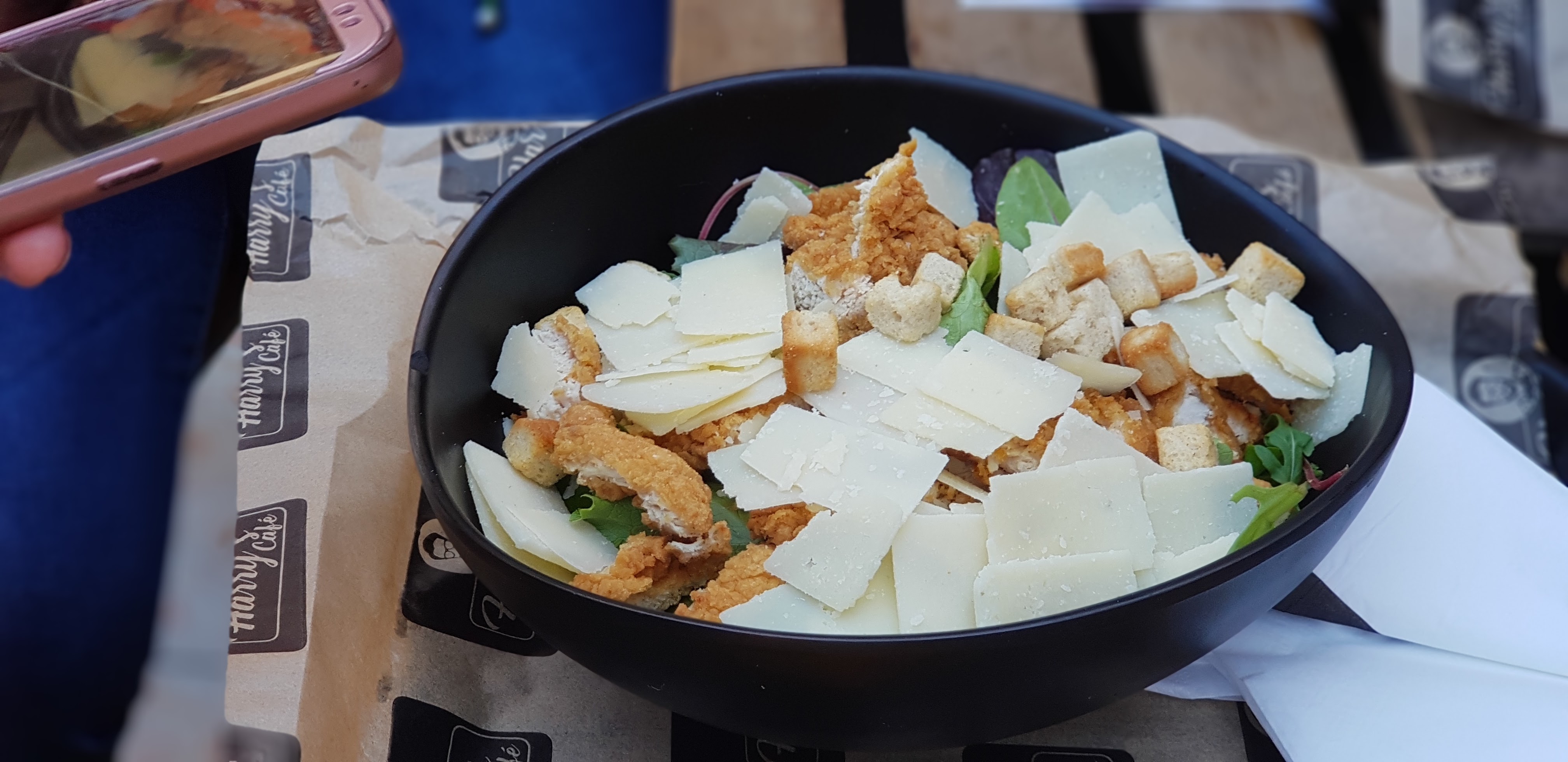 Honte à Harrys Café qui cuit leur escalope de poulet à L'EAU, en plus SANS AUCUNE EPICE pour essayer de camoufler l'horreur ! Mon chat Maya mange exactement la même chose. J'en reviens pas. Il y a un arrière goût de cuisson à l'eau.. juste Horrible !