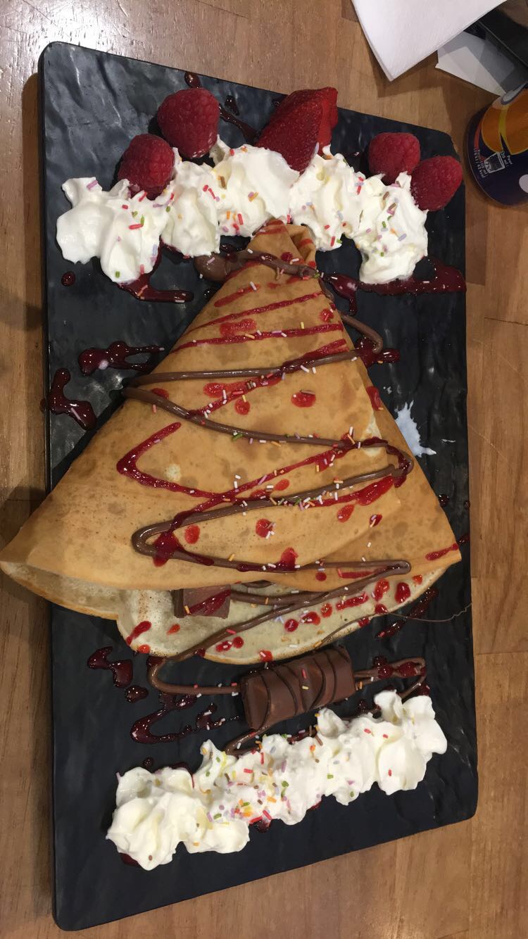 J'ai pris une crêpe salée a la viande hachée , c était degeu ,desolé j'aime pas trop dire sa .mais c était abusè .