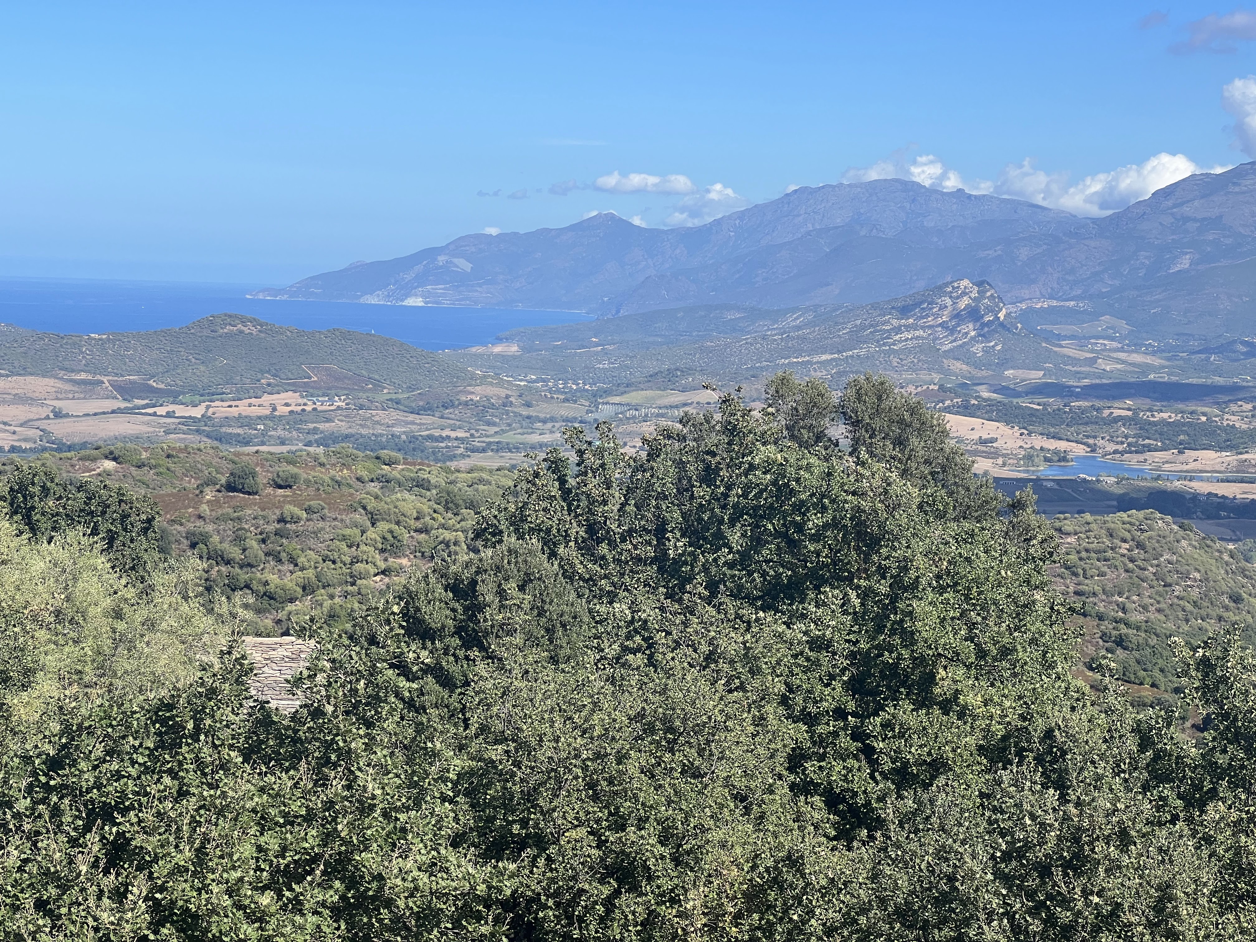 Nous avons fait le circuit des 10 villages de Santo-Pietro du Tenda à Oletta nommé Trésors Patrinomiaux du Nebbu. Un boucle de 50 kilomètres. Nous nous sommes arrêtés pour le déjeuner à Rapale. 5ieme étape. Très bon accueil. Repas excellent et très copieux. Très belle vue jusqu'à la baie de Saint Florent. Vraiment bien.