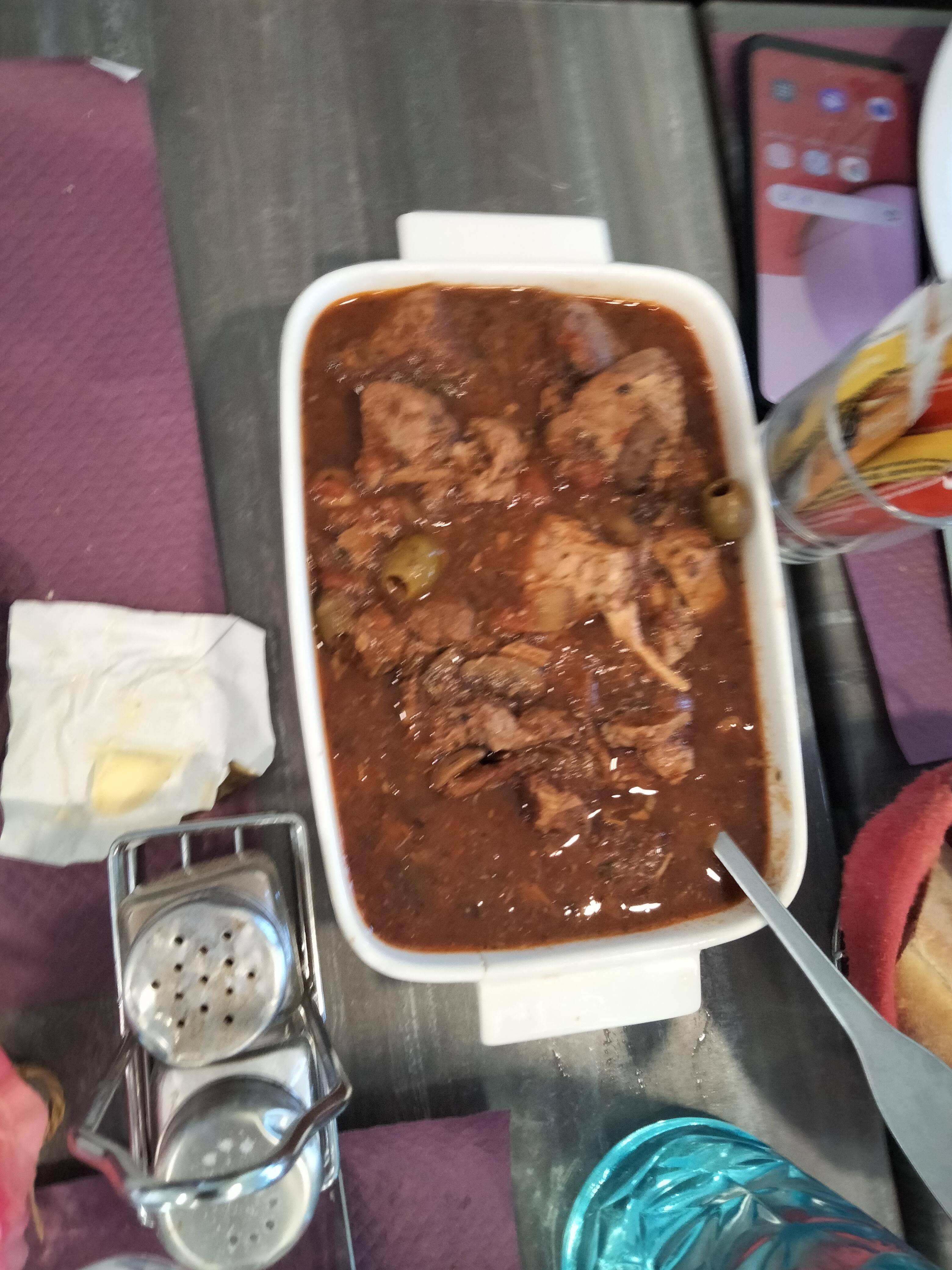Un accueil l'après-midi par Papa au top et le soir par le fils au tip top, un repas digne de grands restaurants Corses ici pas de chichis. Les beignets au fromage et la charcuterie un régal (dommage je n'ai pas eu la recette des beignets) veau aux olives très bien mijoté un régal. Merci pour la Myrte.