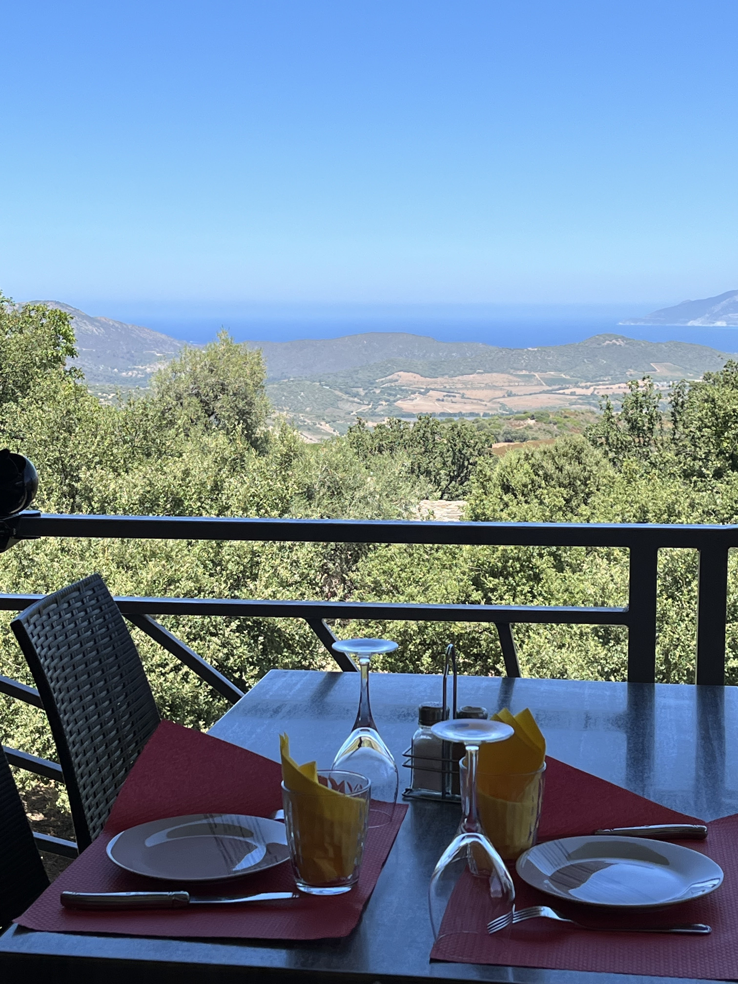 Super cadre : terrasse dominant le Nebbio jusqu'à la mer. Excellent déjeuner, le patron également éleveur peut être fier tant de ses produits que des plats. Bravo !