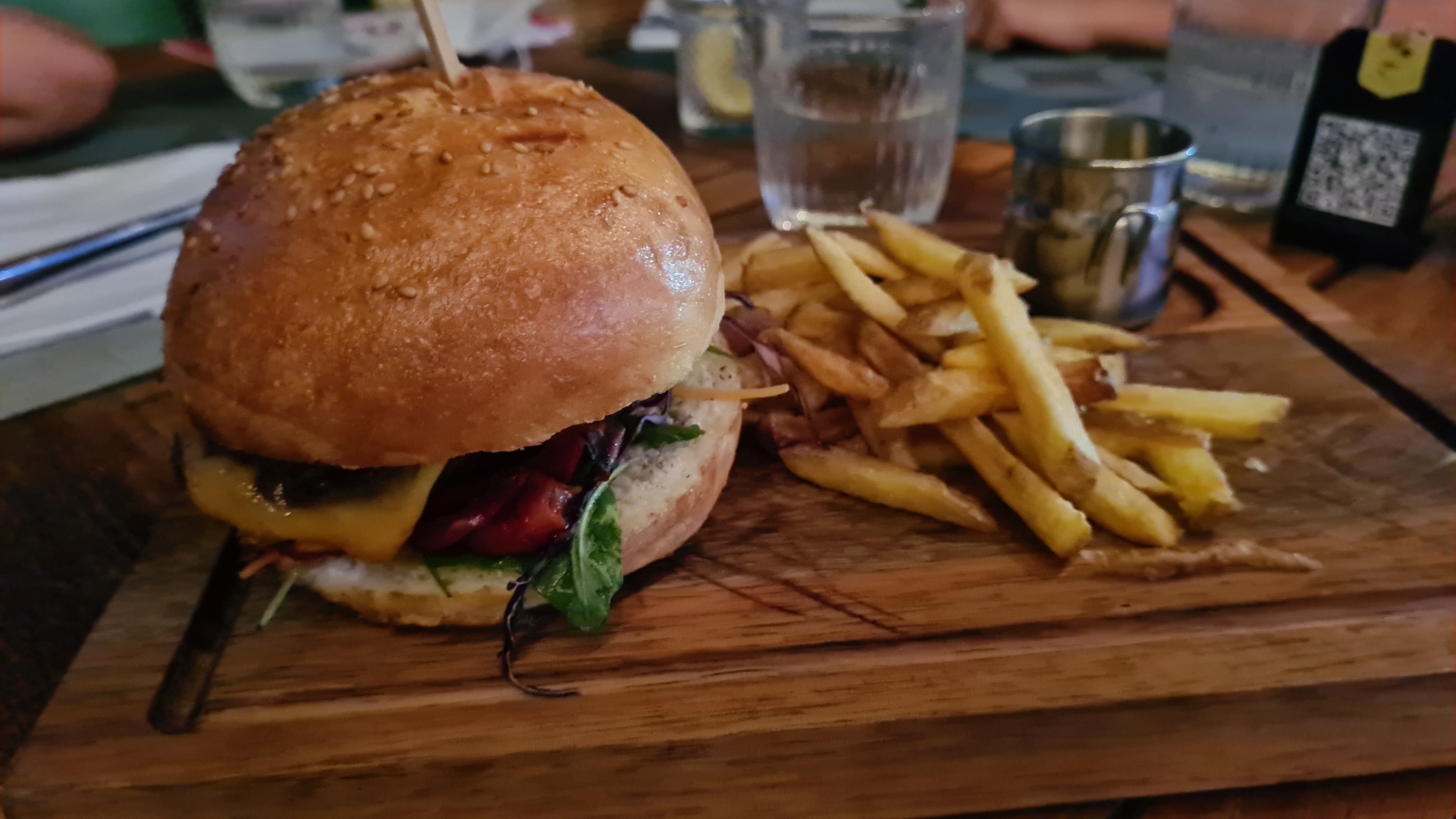 Nous avons eu un burger au thon et un burger au bœuf, tous deux parfaitement préparés. Les beignets au fromage étaient parmi les meilleurs que j'ai goûtés. C'est quand même cher, d'autant plus que l'emplacement est plus ou moins une oasis ombragée au sein d'un parking. Service courtois mais lent.