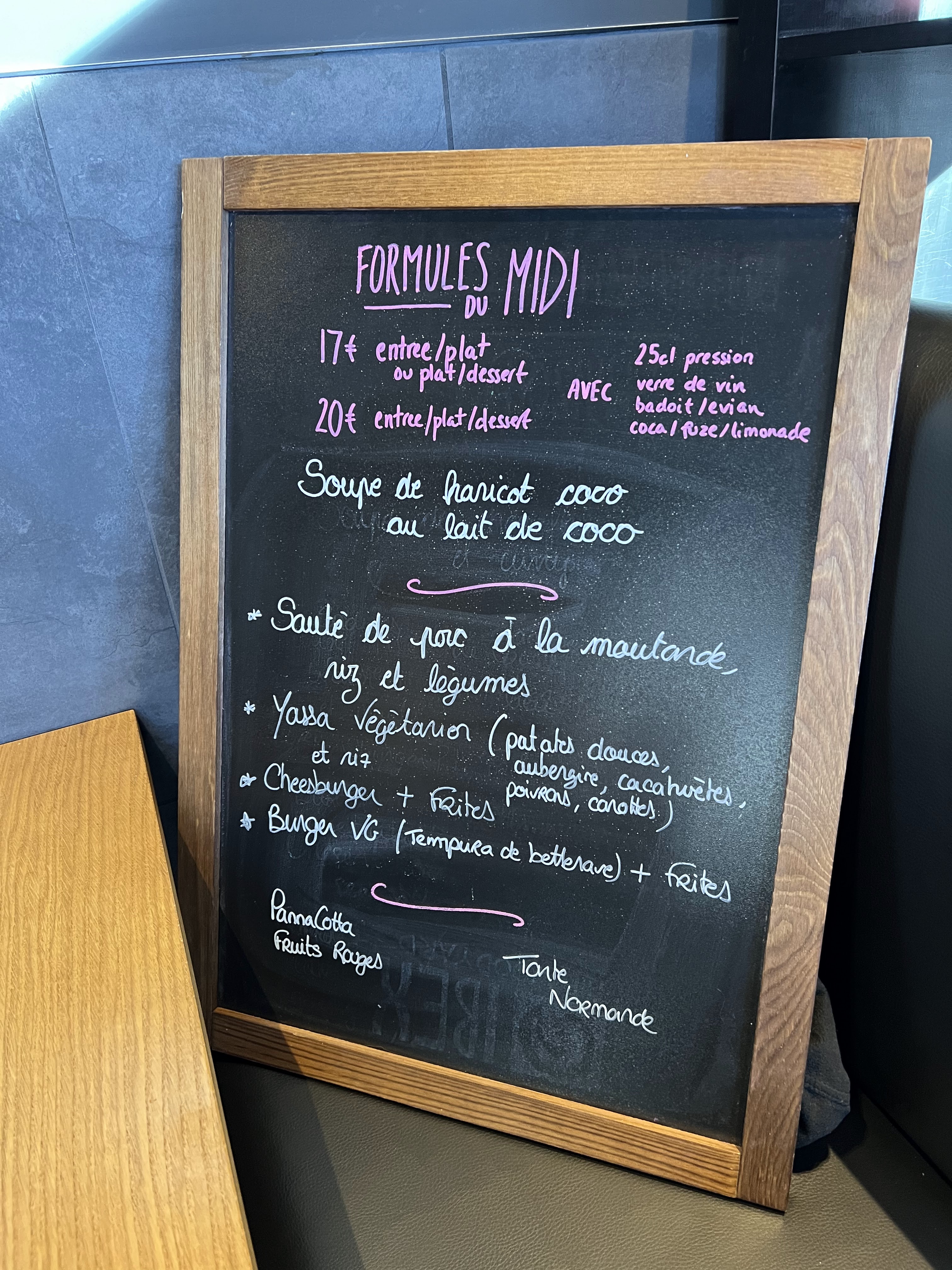 La nourriture était très bonne. C'était assez bruyant et difficile de discuter autour d'un repas. Probablement une question d'âge ! De plus, pas de bière sans alcool pour le chauffeur et pas de bière blonde.