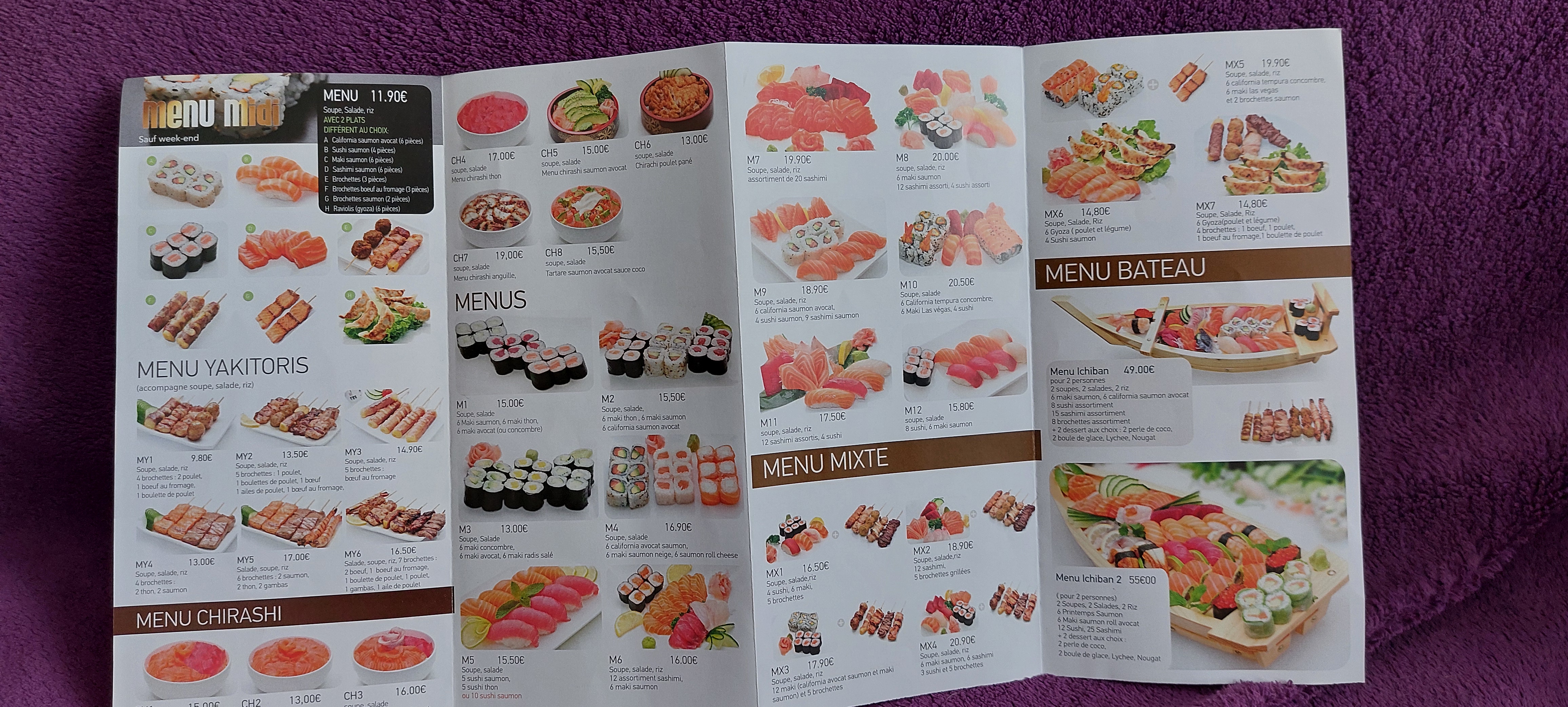 Trés bon. De gros sushi avec du gout et frai. Un service trés agreable. Mais ne venez mas le samedi soir il y a trop de monde j'en ai eu pour 1h30 d'attente a cause en grande partie a la vente a emporter