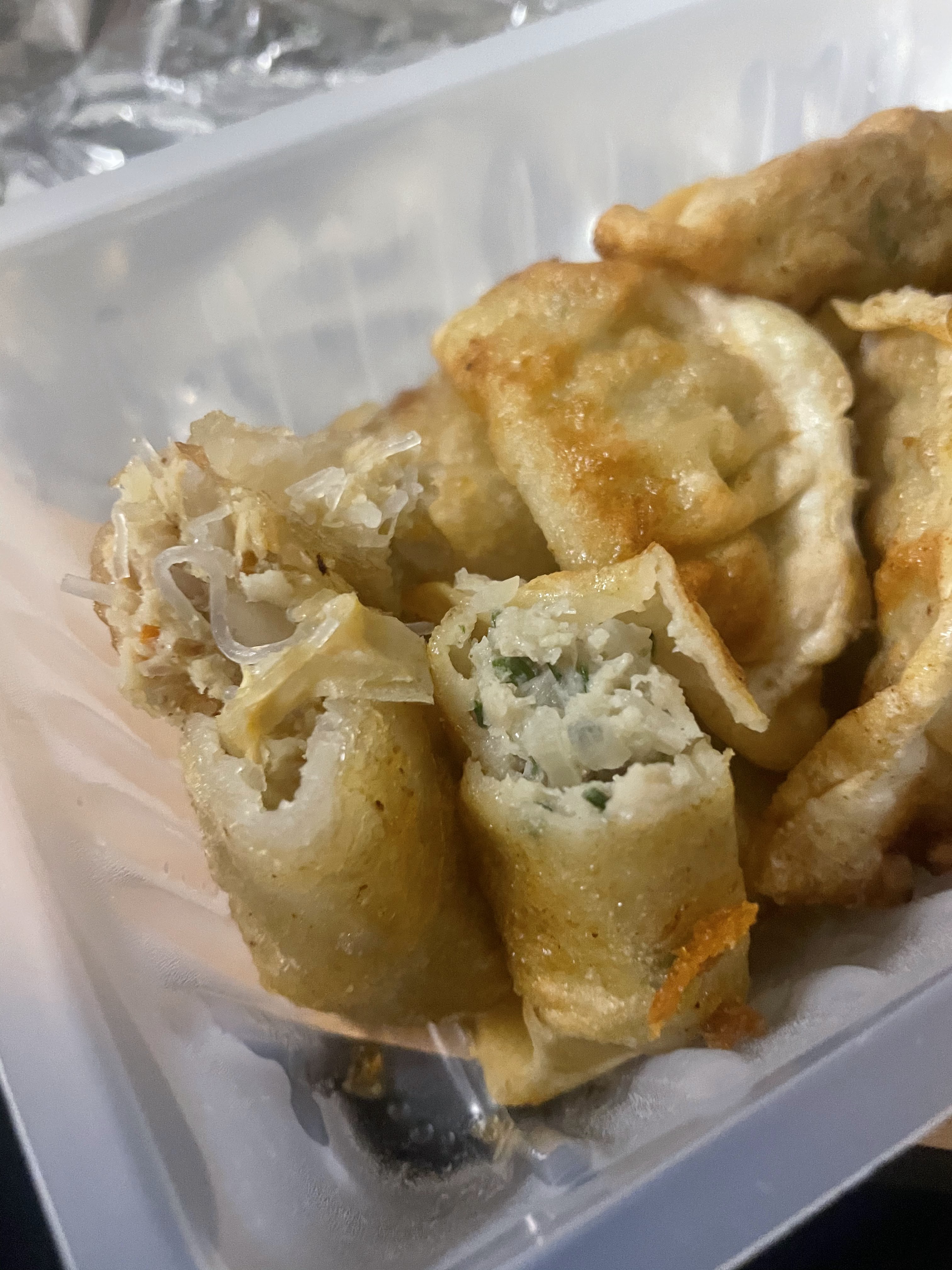 Super gyoza 🥟 croustillant et moelleux et bon California ! Je recommande Les brochettes de poulets pas ouf je recommande pas ( goûté un autre jour)