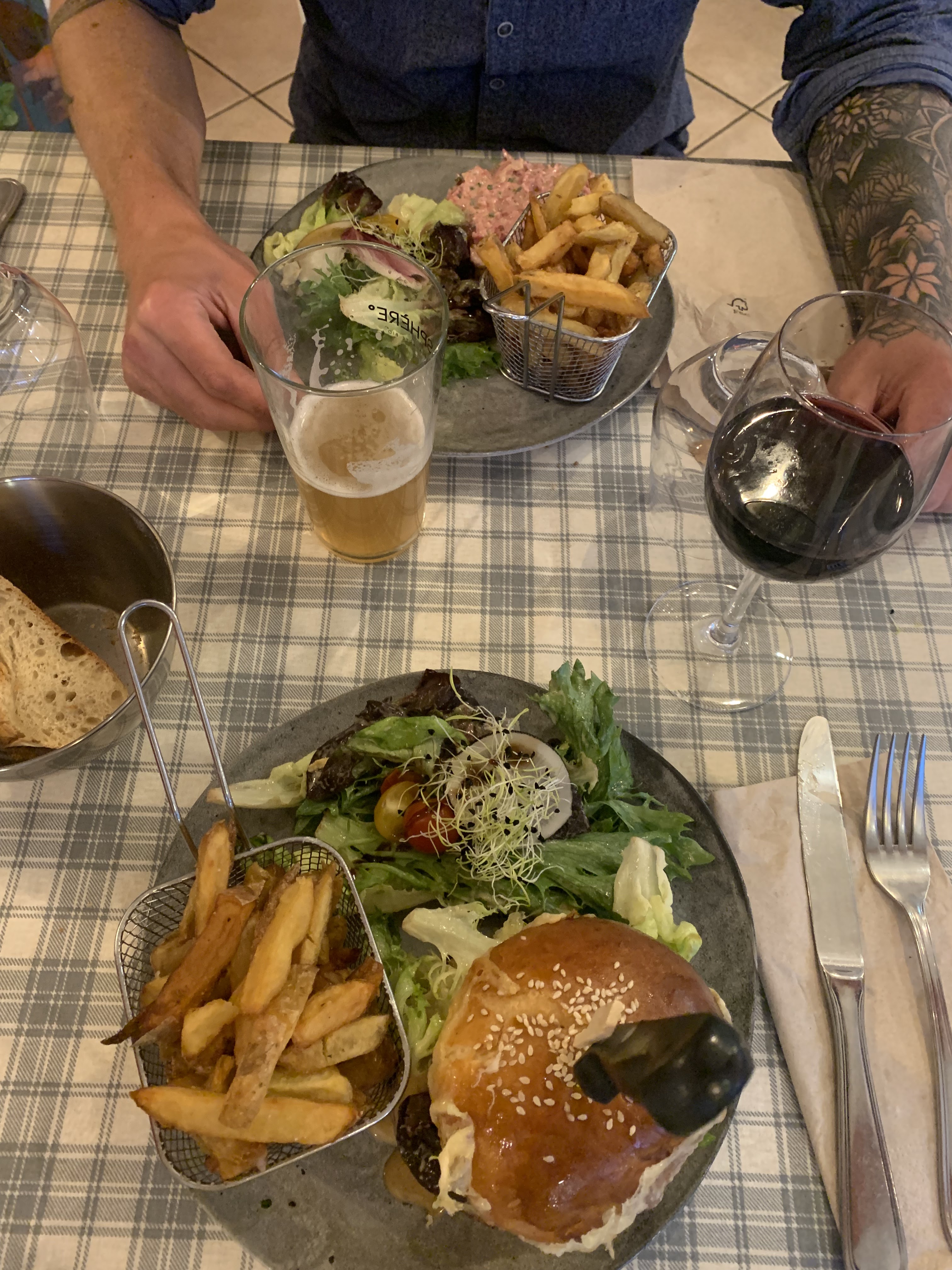 Restaurant au top.salle intimiste peu de tables.carte simple, peu de propositions ce qui laisse présager de la qualité des plats.je confirme et je dis même bravo au chef.un vrai delice ces brechets et gratins dauphinois.le burger pris par mon amie semblait délicieux également.j y retournerai sans hésiter et même je le conseillerai