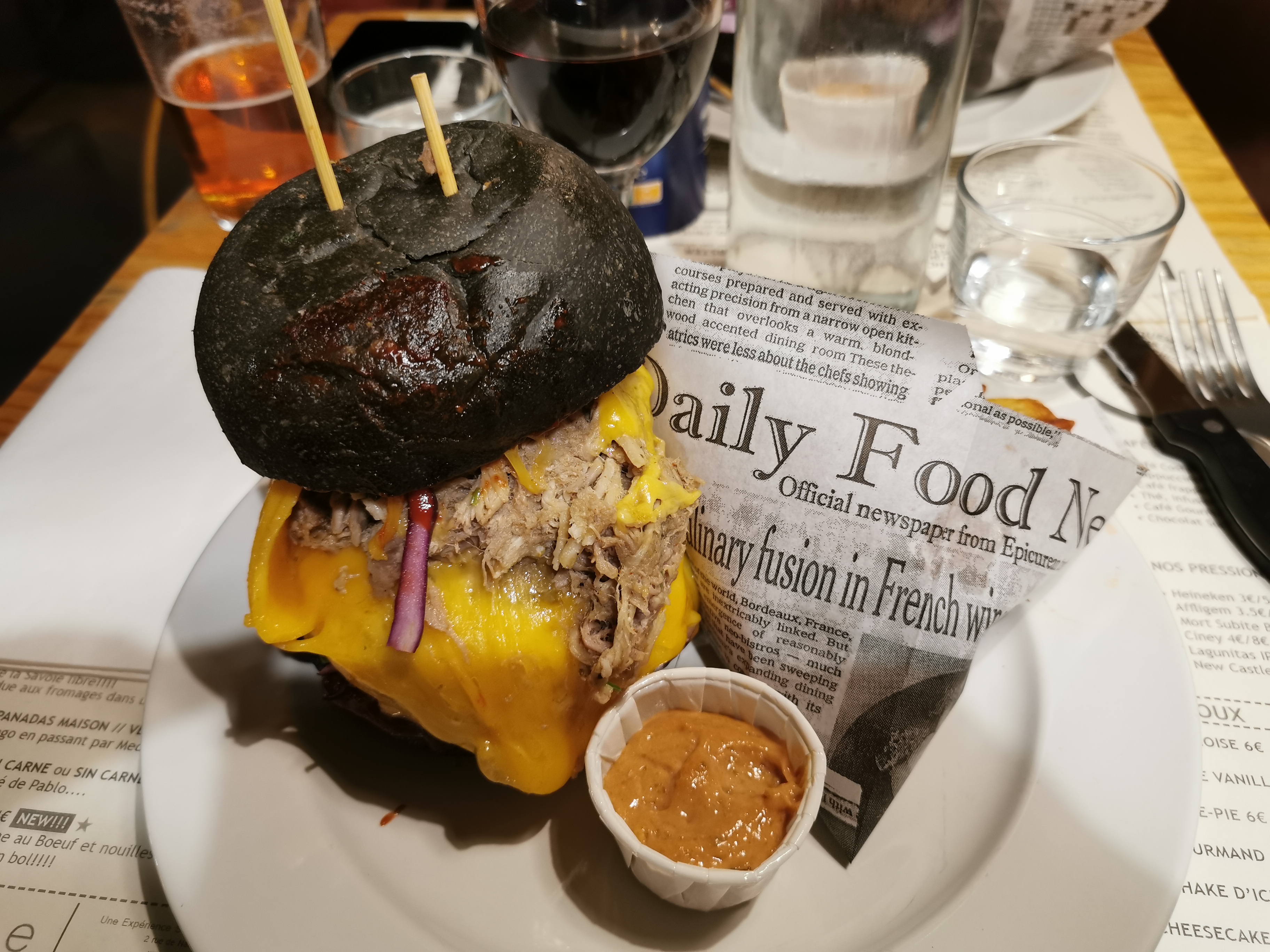 Les burgers étaient au top, le service ni lent ni mal organisé comme indiqués dans les autres avis récents! on était un groupe de 6 et tous satisfaits! et le très bon vin chilien est un plus!