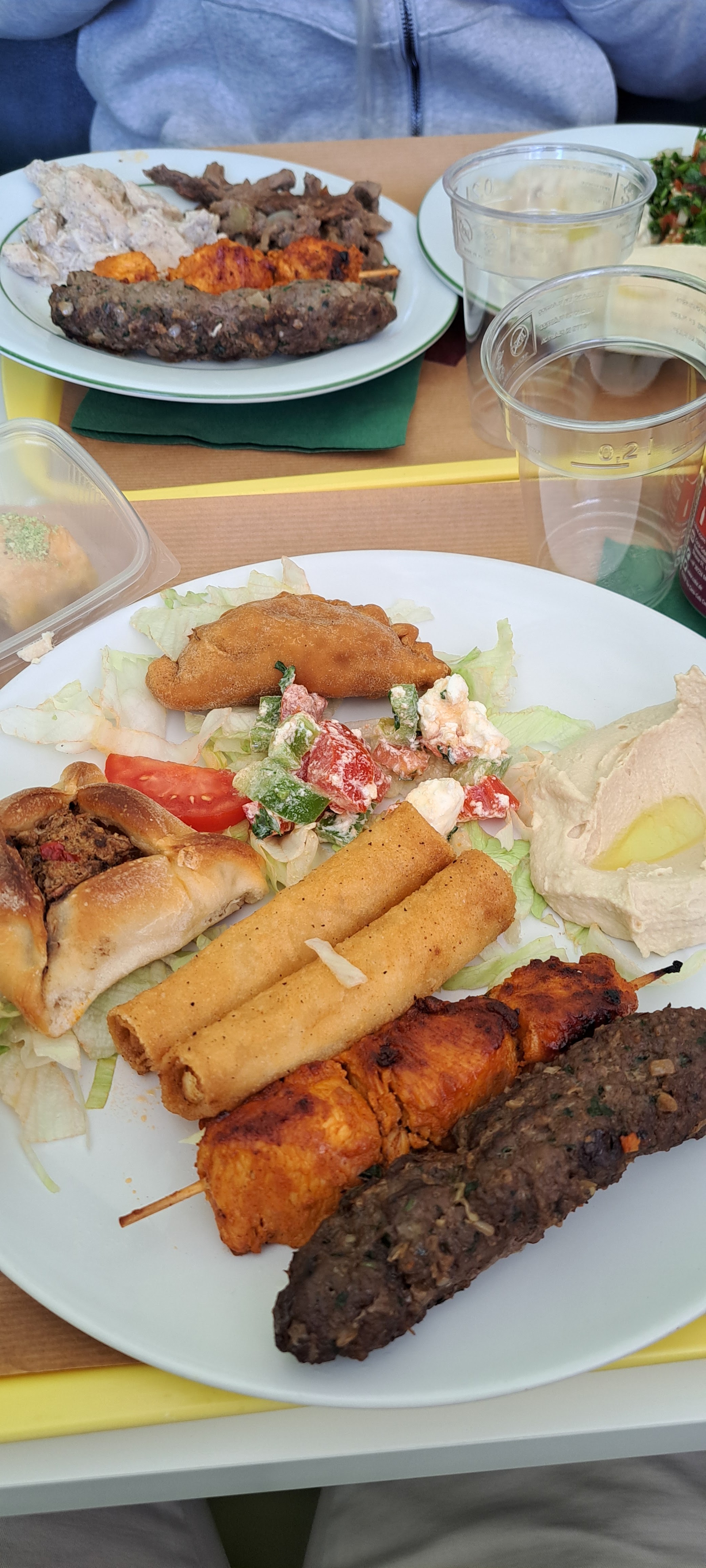 Pour 12€80 une assiette avec un assortiment de 6 éléments au choix, le poulet chawarma et le caviar d'aubergine ne sont pas d'anthologie mais un ensemble très correct et une grande amabilité.