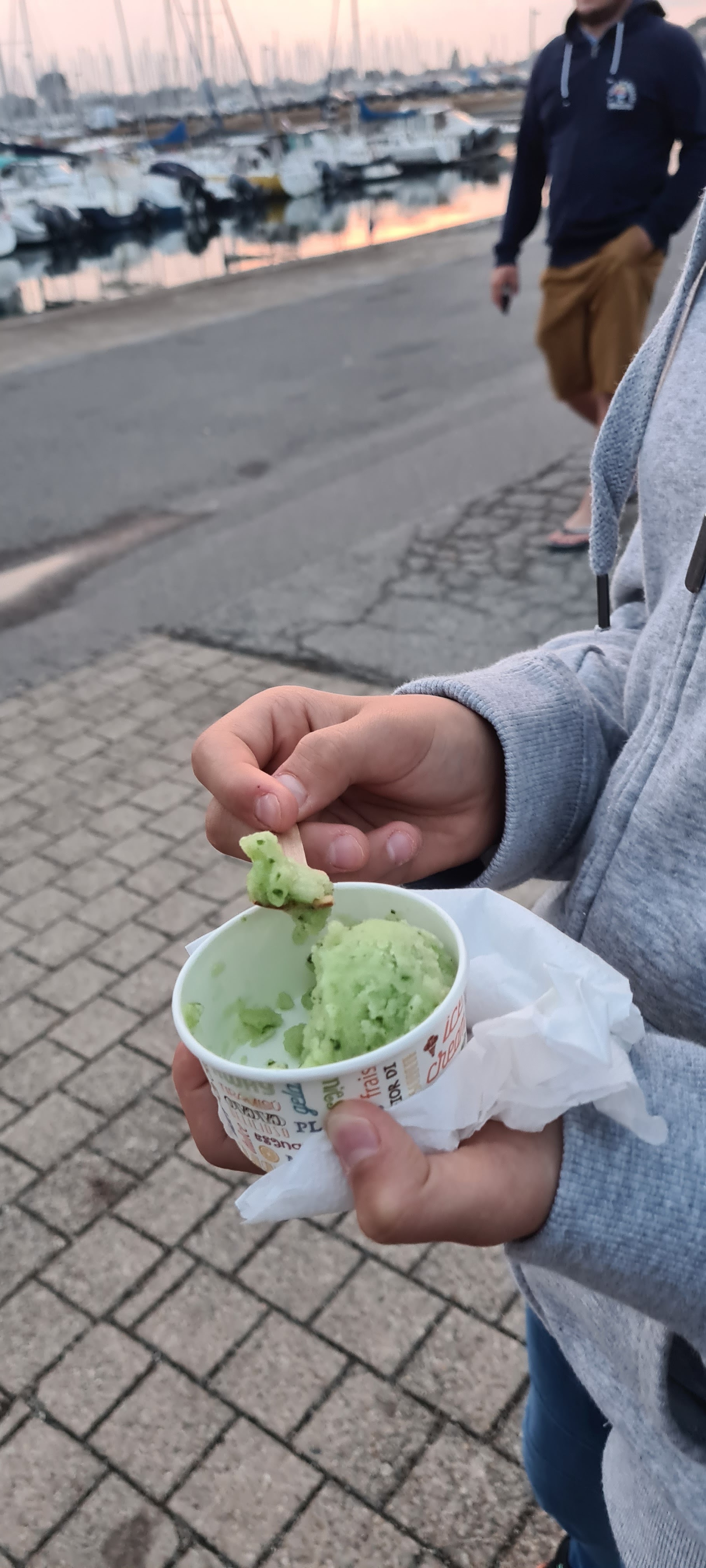 Voir la vendeuse se servir a la petite cuillère dans les glaces sans changer de cuillères beurk et le gout ne vaut pas le coup mieux vaut aller un peu plus loin sur le port moins de choix de goût mais la qualité y est meilleure !