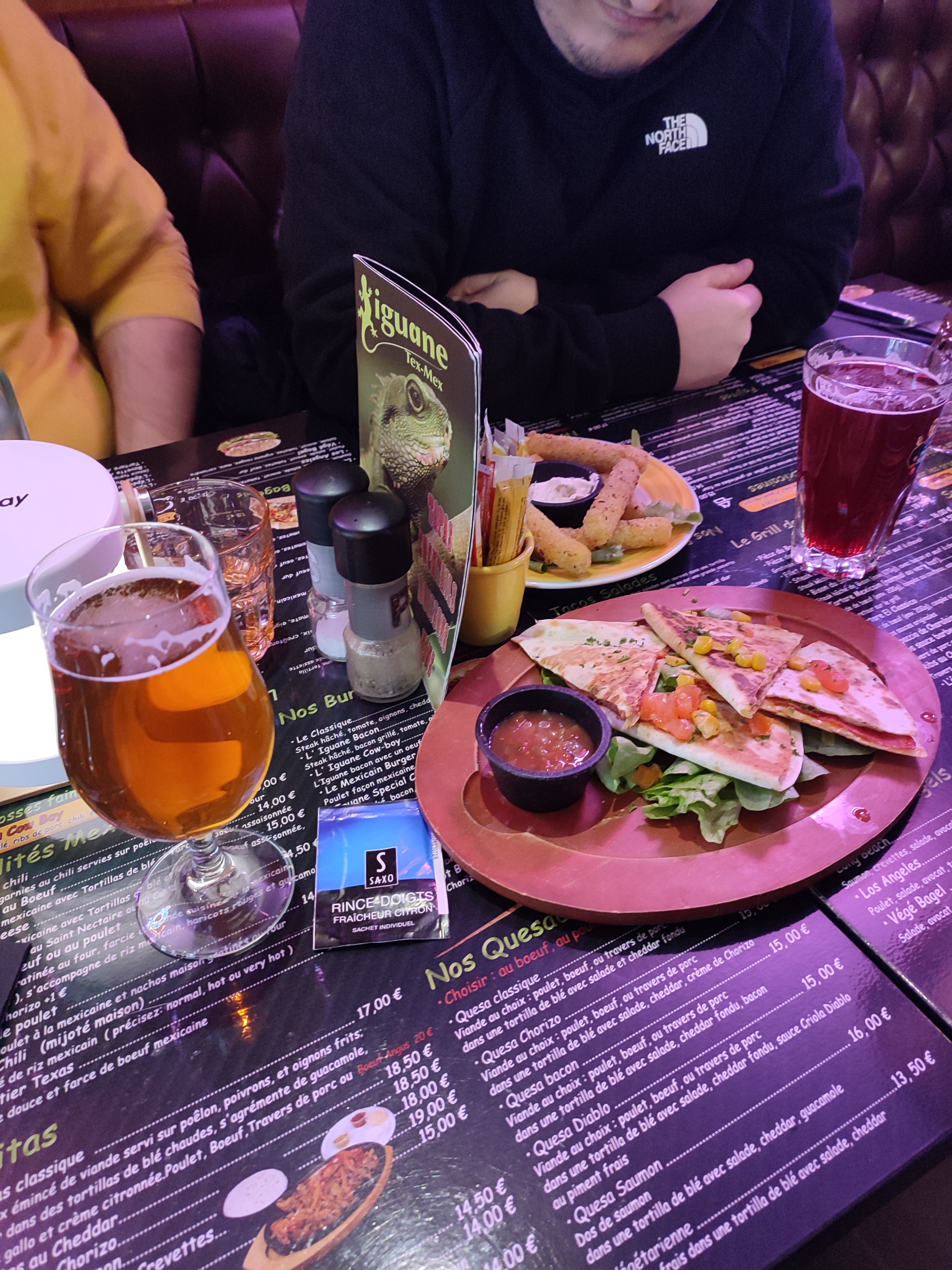 La carte du menu avec beaucoup de choix pour tous les goûts, même si vous n'aimez pas la cuisine mexicaine il y a plein d'autres plats délicieux 😋. Ambiance très bien, la serveuse dynamique, sympathique et à l'écoute du client. Nous étions un gros groupe et malgré cela, tout le monde à été servi vite et en même temps. Bon qualité prix. Je recommande. 🙃