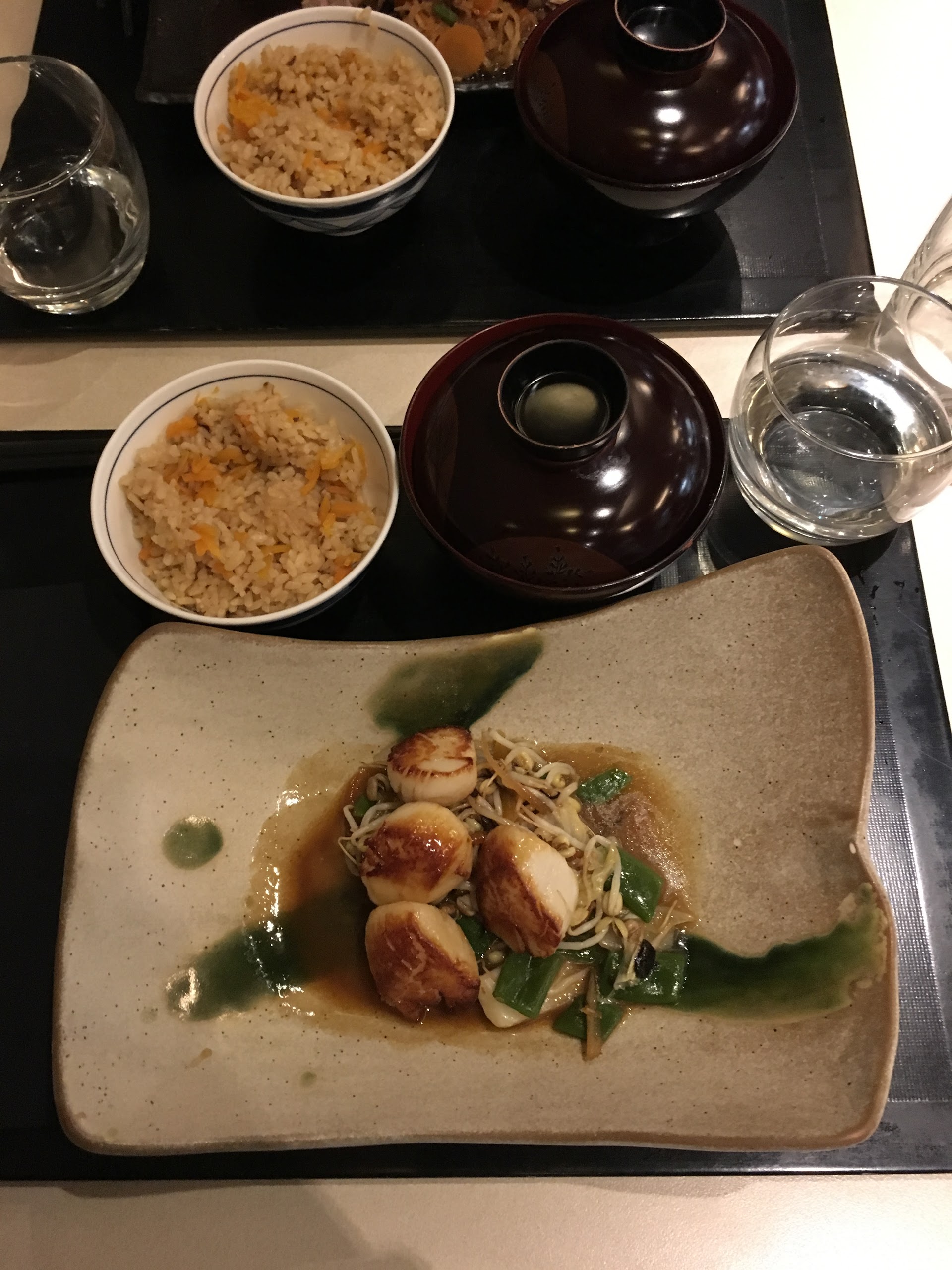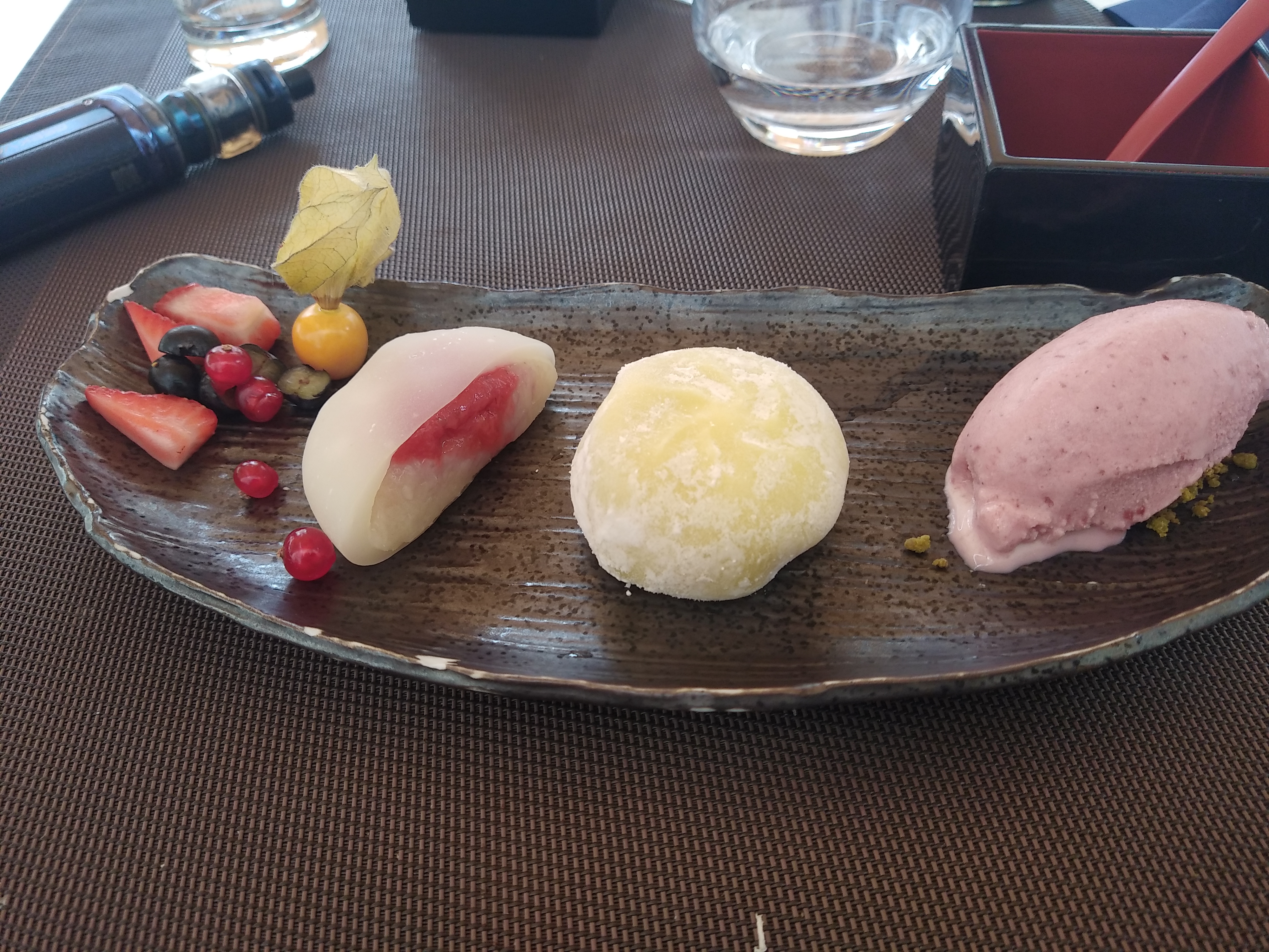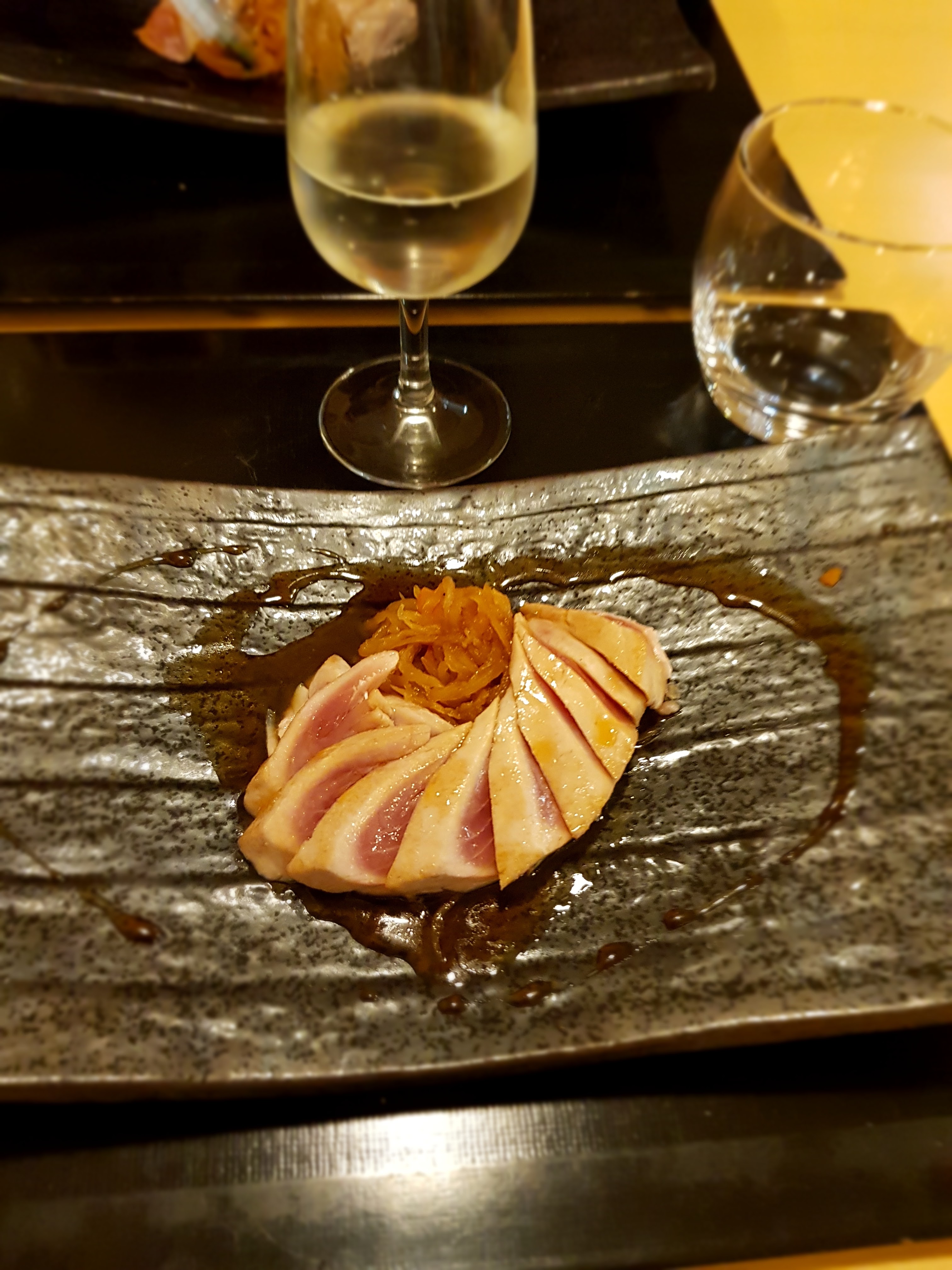Une première pour nous, pas d'un restaurant japonais, mais d'un étoilé et toqué. 繊細で美味しい (Délicat et délicieux)