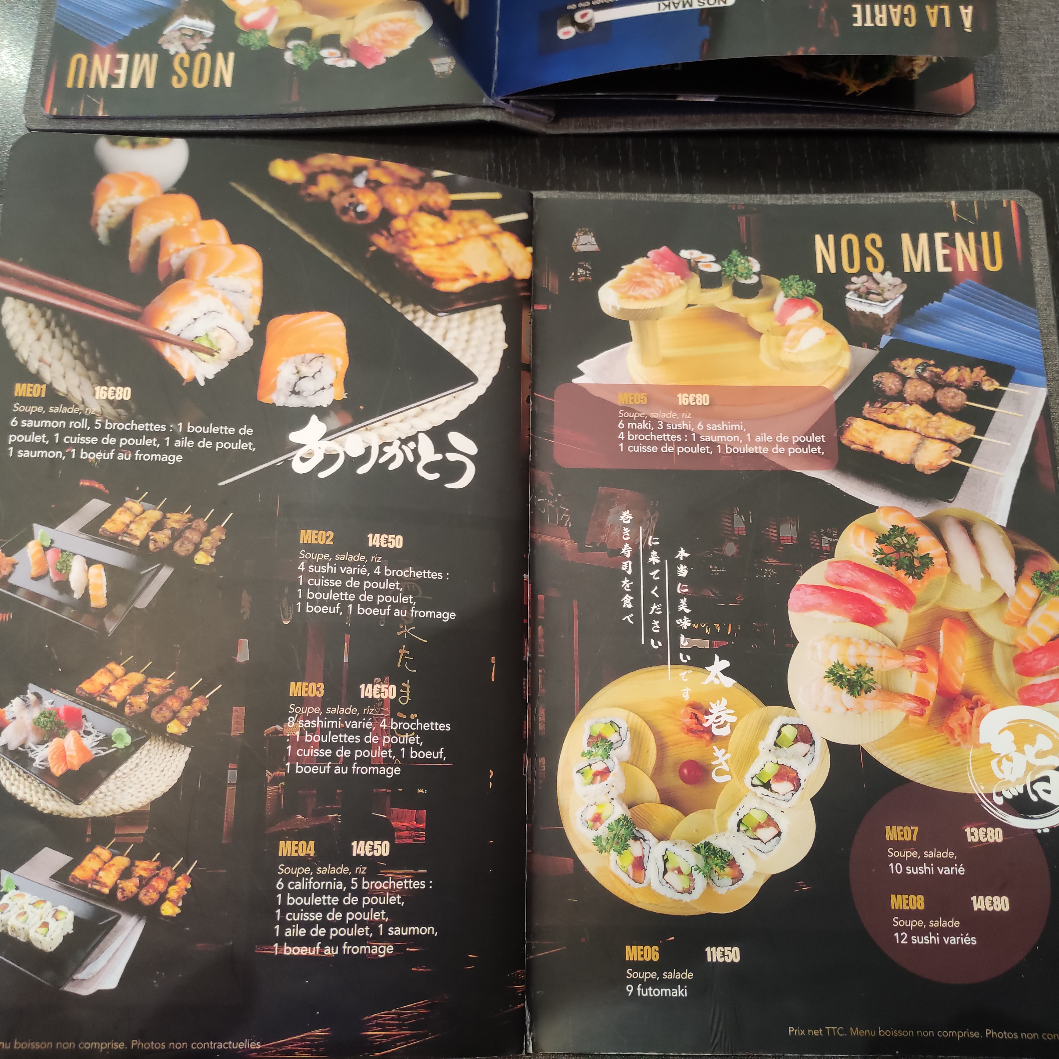 J'habite à côté et vient souvent : restaurant terasse sympatique avec des très bons plats et une carte menus original qui change de d'habitude des autres restaurants japonais. Les serveurs sont sympas. Temps d'attente rapide. Le seul inconvénient serait le prix de certains plats que je trouve parfois un peu plus cher que la moyenne. Mais sinon c'est top. Je recommande.