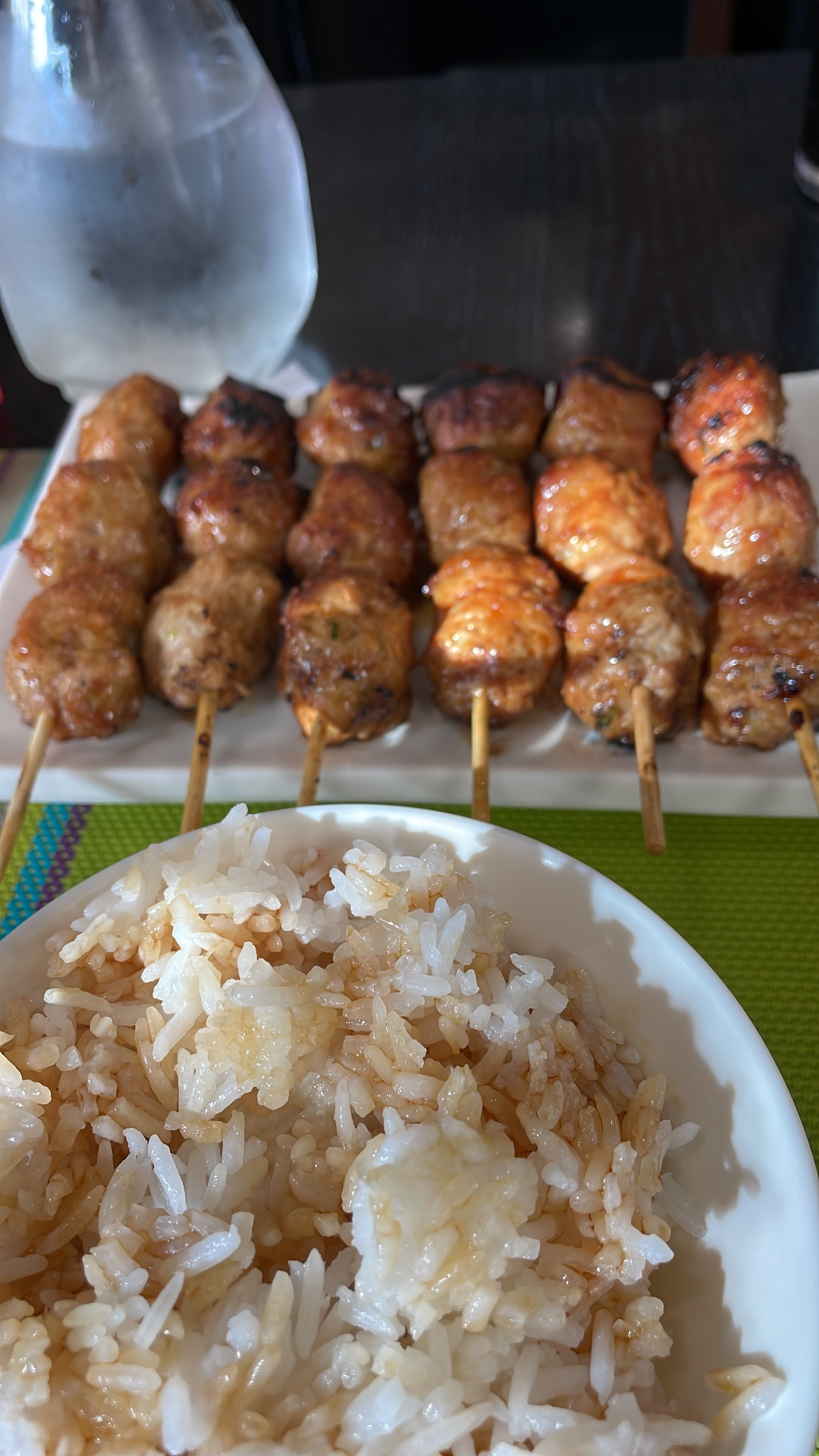 Les brochettes étaient vraiment délicieuses. Viande moelleuse et juteuse, sauce délicieuse. Le riz était sec, je ne sais pas si c'est simplement parce que nous étions la dernière commande de la nuit. La soupe miso était bonne.