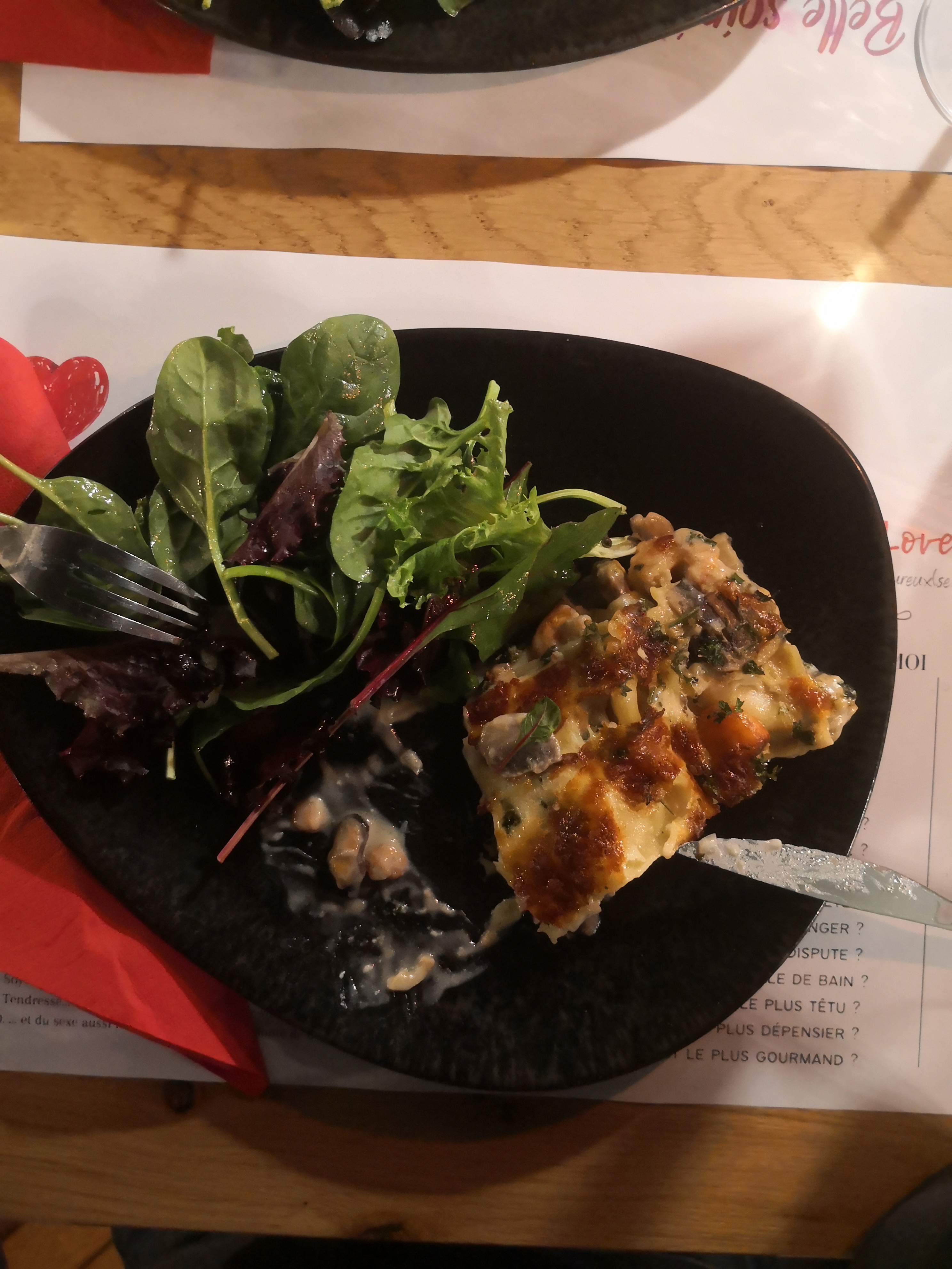 J'ai bien apprécié les lasagnes aux fruits de mer. Pour une première visite curieuse je n'ai pas été déçu. Ambiance chaleureuse. Une prochaine visite sans doute pour confirmer l'essai. J'ai pas retenu tous les noms des entrées et desserts 😊mais j'ai bien mangé.