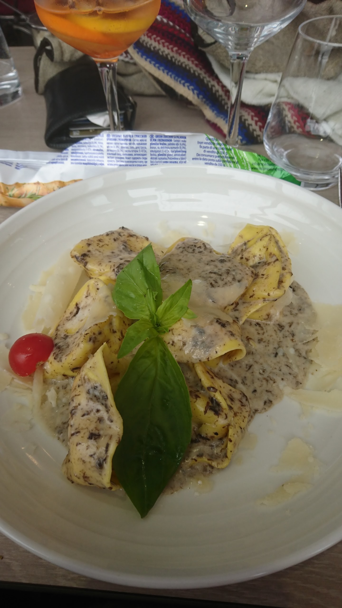 Un bon plat de pates et un verre de vin, le restaurant est bien situé et le service sympa 🙂