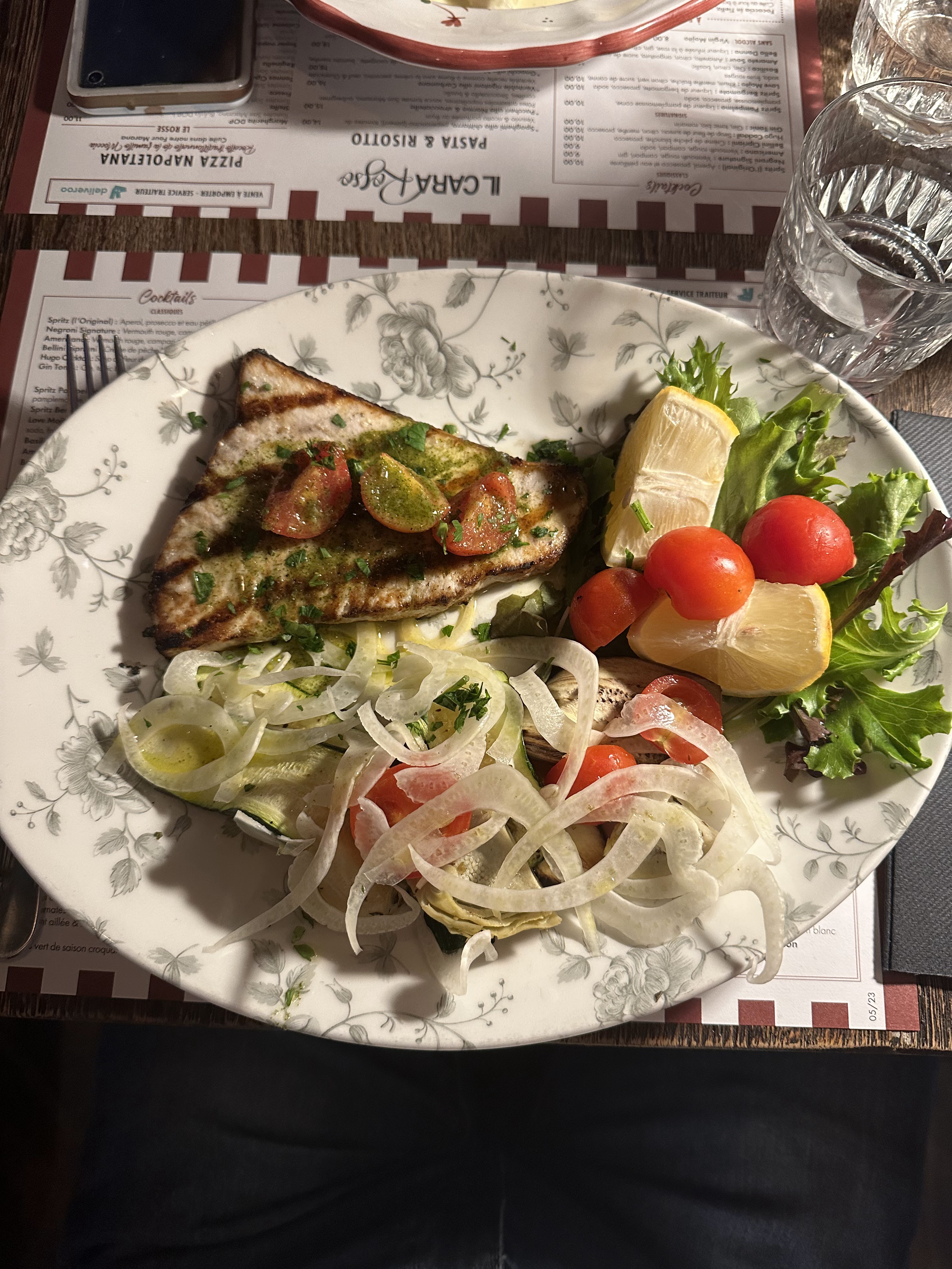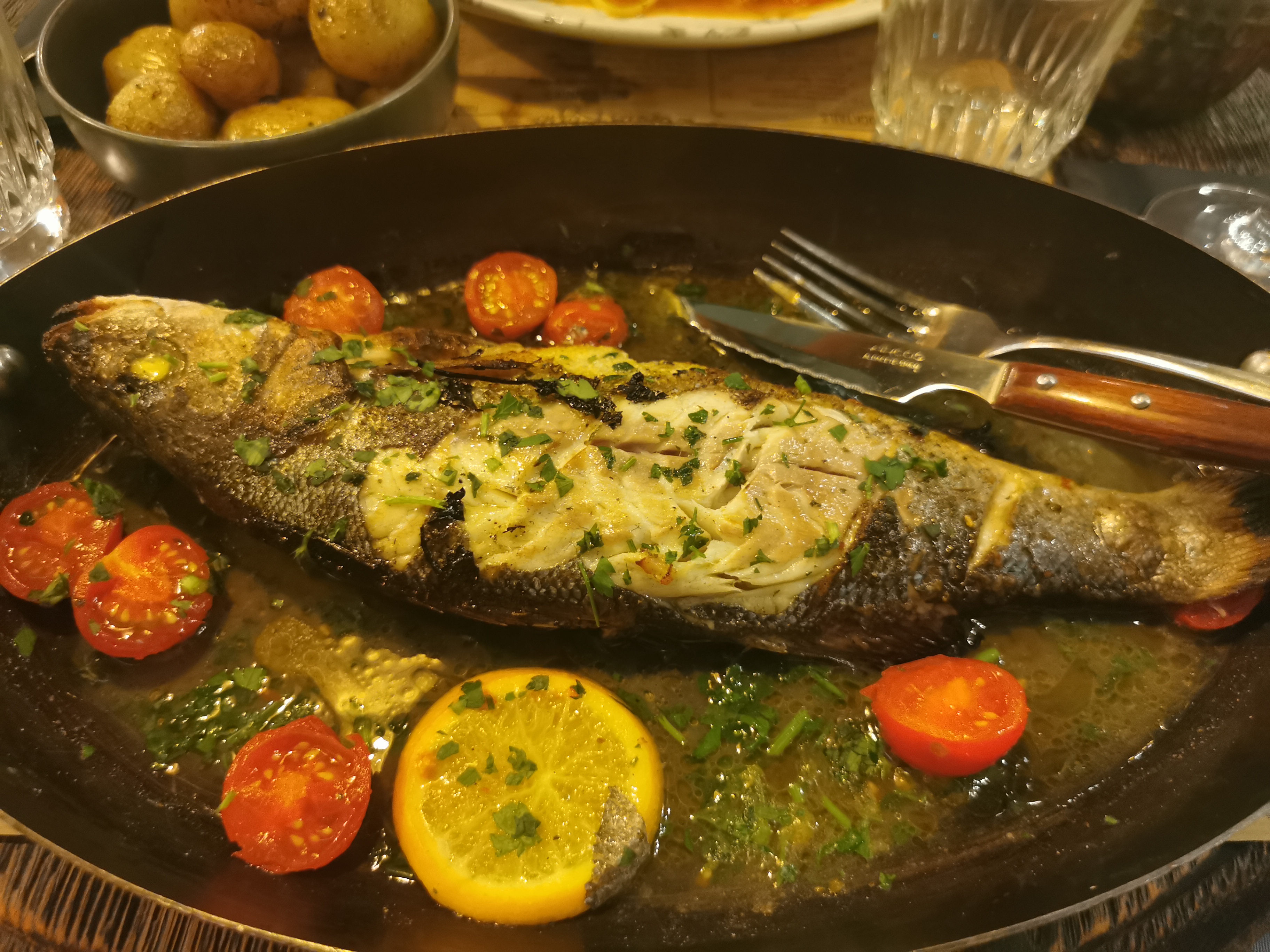 Ce bar grillé aux petits légumes cuits à point= une pure merveille. Et la serveuse était aussi attentionnée vêt souriante: un excellent dejeuner