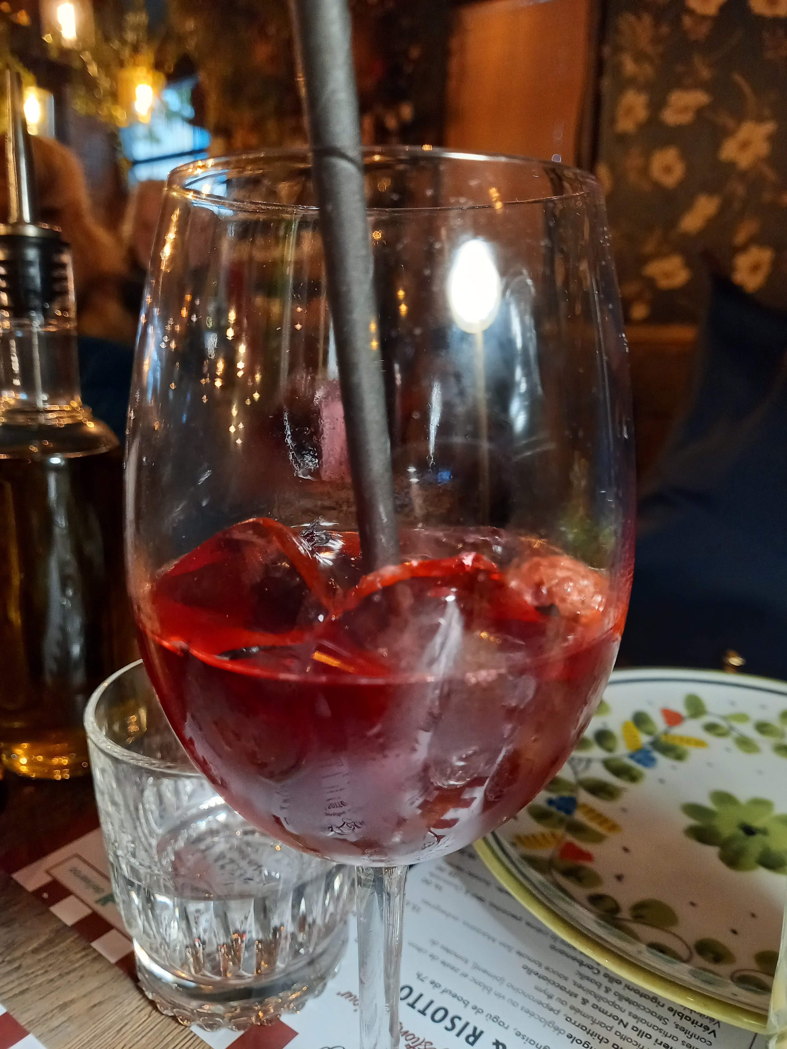 C’est un endroit chaleur mais malheureusement la cuisine n’est plus ce qu’elle était c’est bien dommage.. nous avons été service une dégustation de mozzarella burrata mais malheureusement l’assaisonnement n’était pas là, nous avons due demandé au serveur si c’était normalement et il est revenu avec l’assaisonnement. Nous avons commander un deuxième spritz qui malheureusement était bouchonné à cause du prosecco, le serveur nous l’a changer sans soucis avec gentillesse. Nous avions l’habitude de prendre en dessert la profiterole qui est très bonne mais avant nous avions 3 choux pour 9€ maintenant nous avons un simple choux pour le même prix c’est dommage.
